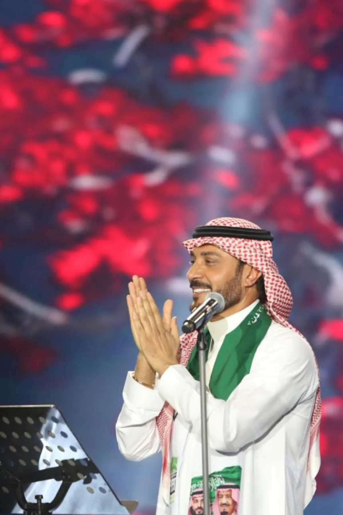 افتتح المهندس وصلته بأغنية "فهموه"، وقدَّم التهنئة للجمهور السعودي والقيادة الرشيدة بمناسبة اليوم الوطني السعودي الـ 89، قبل أن يواصل أداء أعماله الغنائية.
