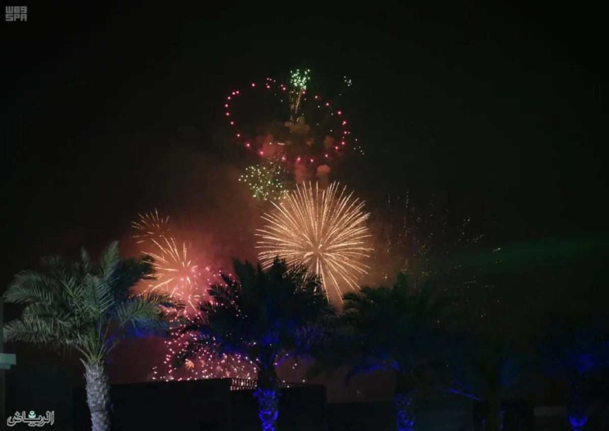 وتلوِّن الألعاب النارية سماء الباحة، احتفاءً باليوم الوطني الـ89، ويمكن مشاهدتها في طريق الملك سعود.
