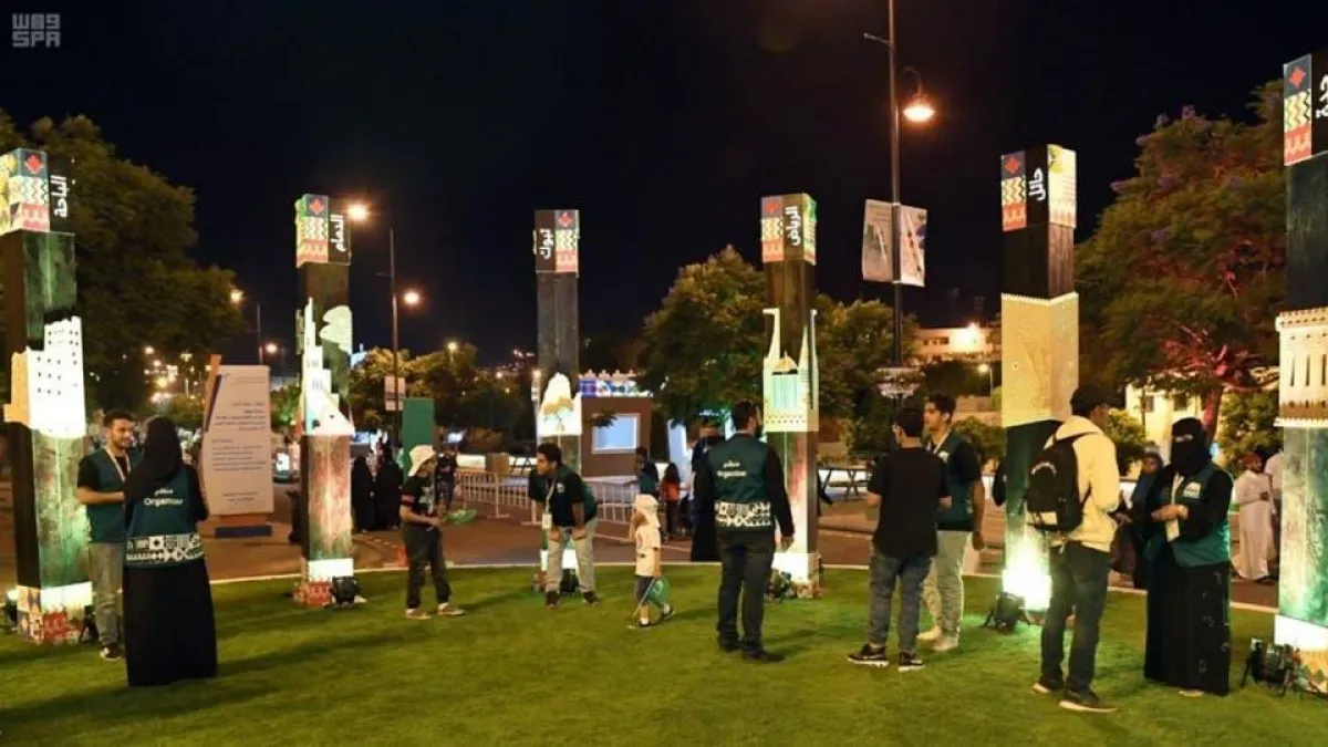 يستمتع سكَّان وزائرو نجران، خلال الاحتفاء بيوم الوطن، بالألعاب الناريَّة على طريق الملك عبد العزيز، إضافة إلى التعرف إلى تجارة البن.