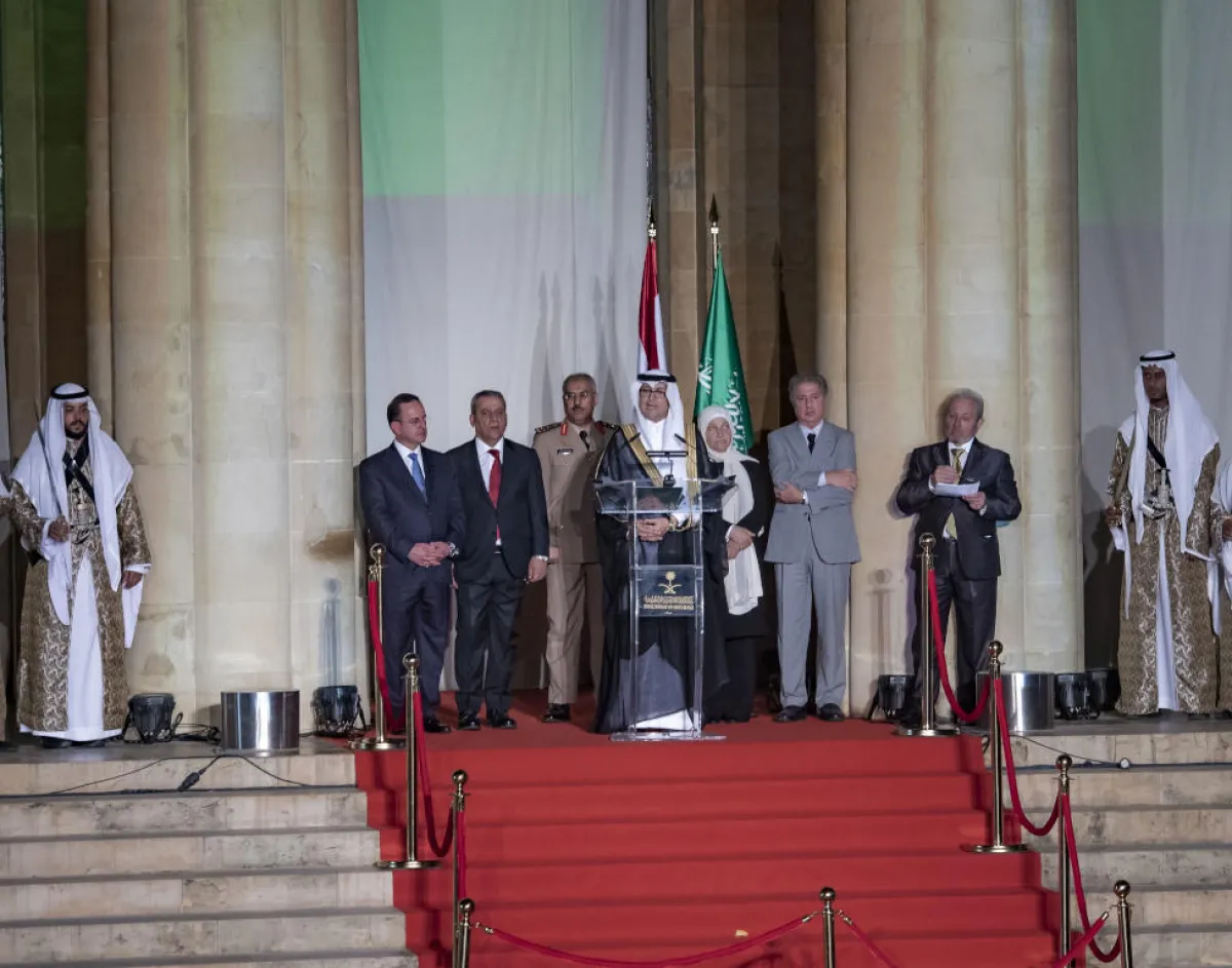 واستُهل الحفل بالنشيد الوطني اللبناني والسلام الملكي السعودي، وبعد ذلك ألقى السفير بخاري كلمةً ركز فيها على العلاقة المتينة والوثيقة بين البلدين، وقال : في هذا اليوم الأغرّ، وعلى عتباتِ المتحفِ الوطنيِّ رمزِ وَحدةِ الأشّقاءِ اللبنانيين بأطيافهم كافة، وحارسِ تاريخِ عيشِهُمُ المشترك، نستذكر معًا في مناسبةٍ عظيمةٍ هي يومُنا الوطنيُّ المجيد، قصّةَ ملحمتِهِ التاريخيةِ الخالدةِ في توحيدِ بلادي، تحت رايةٍ واحدةٍ بقيادةِ فارسِ الجزيرةِ العربيةِ الملكِ المؤسِّسِ المفغورِ له - بإذن اللهِ تعالى- الملكِ عبدِ العزيزِ بنِ عبدِ الرحمن آل سعود- طيّب الله ثراه- حيث استطاعَ مع قليلٍ من الرجالِ أن يجمعَ شتاتَ أمّة، ويلمْلِمَ أطرافَ وطن .