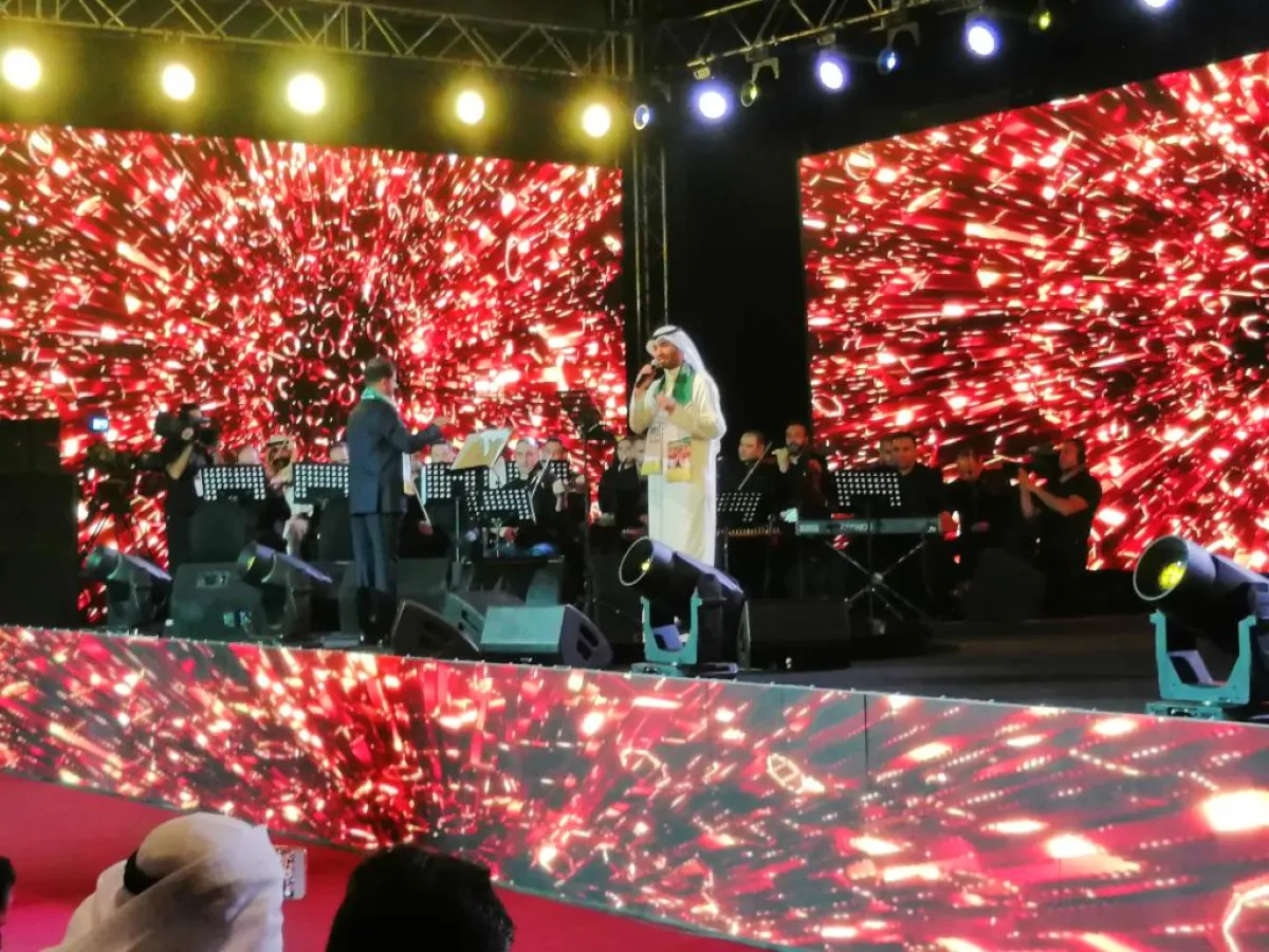 وسط تصفيق وهتافات الجمهور السعودي، الذي عاش ليلة طربية على أنغام الموسيقى الخليجية، التي استمرت إلى ساعات الفجر الأولى من مساء يوم أمس، أحيا الفنان العراقي وليد الشامي والفنانة الإماراتية شمة حمدان والفنان الكويتي مطرف المطرف حفلتَهم الغنائية، داخل الصالة المغطاة بنادي الخليج بسيهات، ضمن احتفاليات المنطقة الشرقية باليوم الوطني الـ89 للسعودية، والتي تُقام برعاية الهيئة العامة للترفيه، وبتنظيم وإشراف من شركة روتانا للصوتيات والمرئيات، تحت شعار "همة حتى القمة".