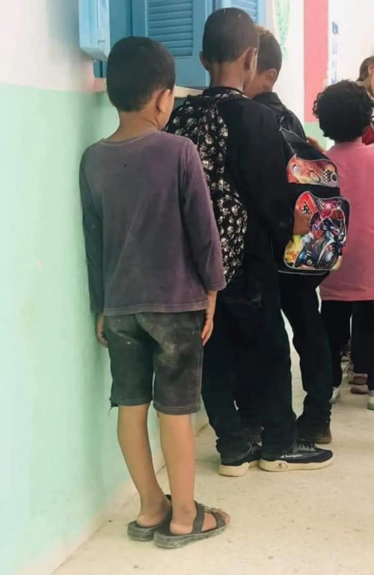 ظهر التلميذ الفقير واسمه يوسف خلف زملائه التلاميذ في لباس رث بلا ميدعة ولا محفظة يحملها على غرار أقرانه وكان يرتدي شبشب والدته التي لا تناسب مقاسه.