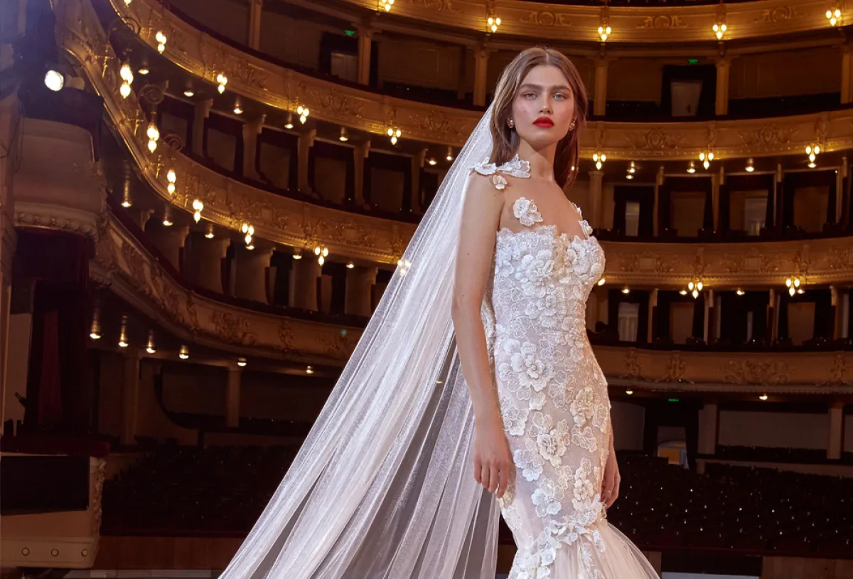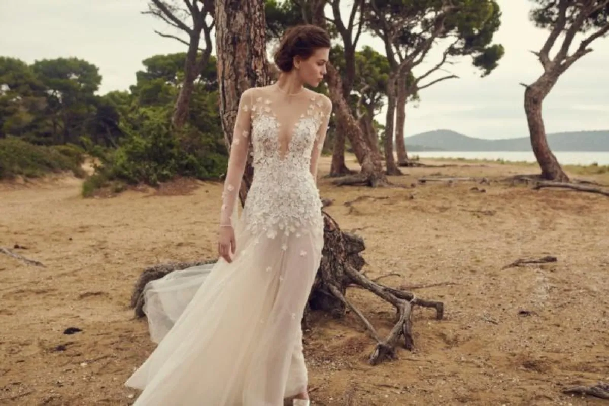 أحببنا الفساتين المزينة بالورود البيضاء لتعكس شخصية العروس الرومانسية مثل فساتين Galia Lahav، بيرتا Berta، وcostarellos.