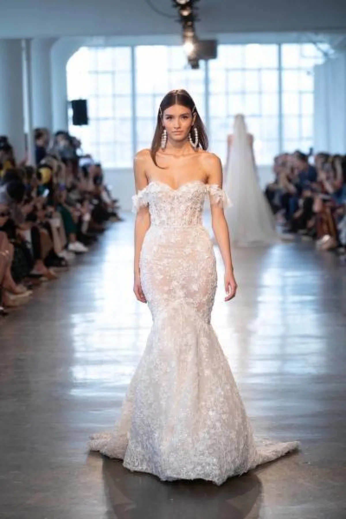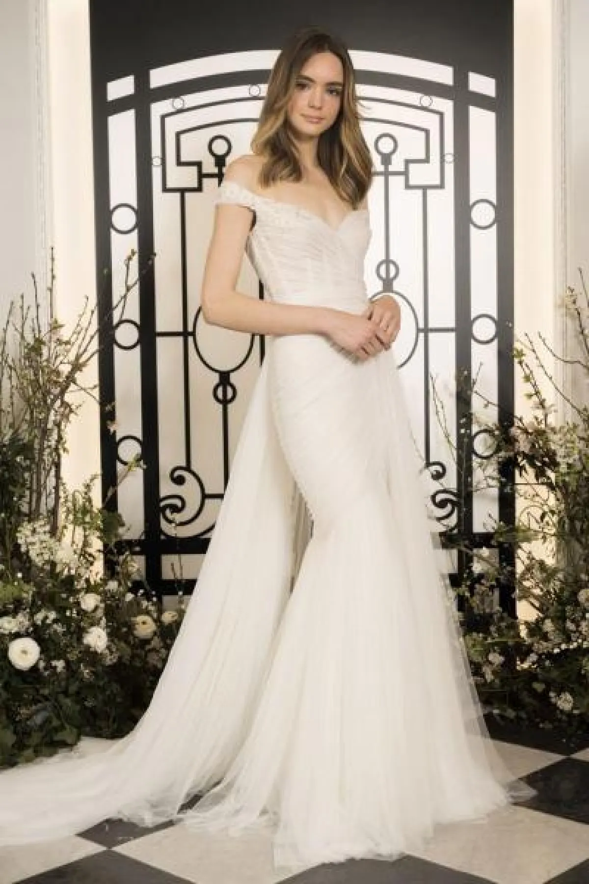 كما قدمت ماركة Pnina Tornai العديد من الموديلات الضيقة التي تناسب العروس صاحبة قوام الساعة الرملية، وتتسم بالأنوثة والجرأة.