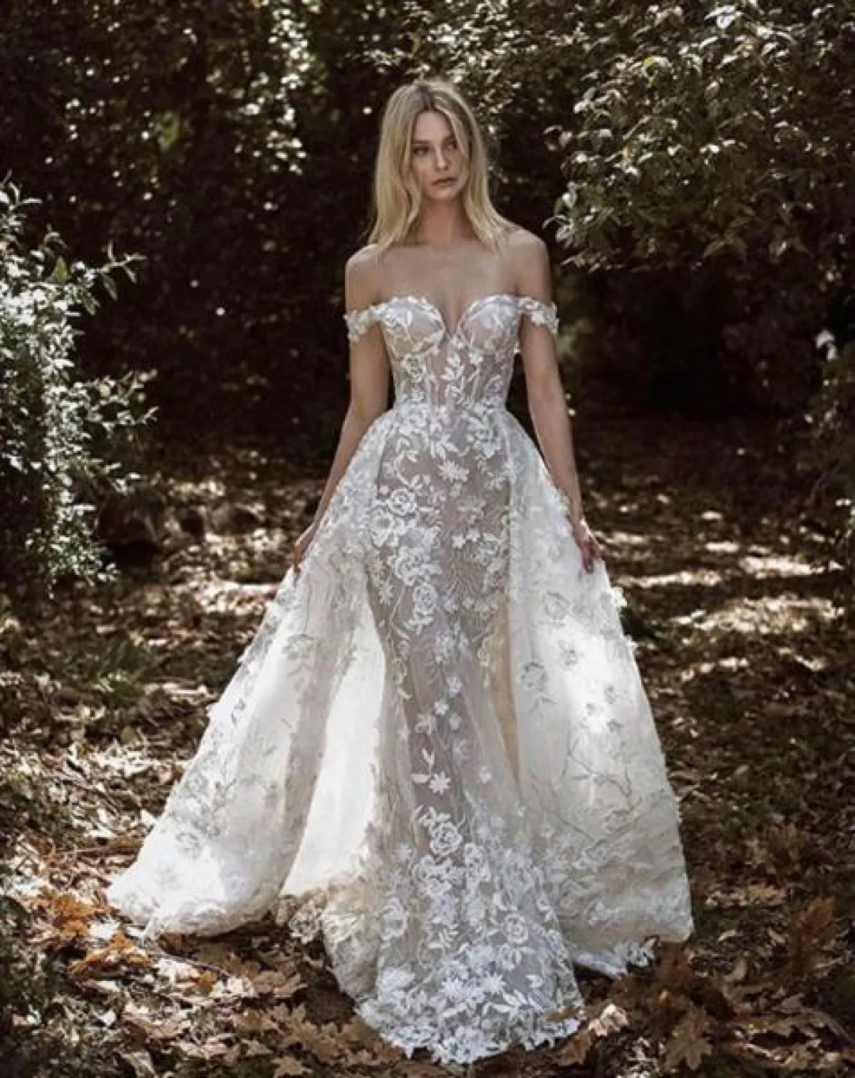 برزت العديد من تصاميم فساتين الزفاف الأوف شولدر من توقيع أشهر الماركات مثل فستان Alon livne white، فستان بيرتا Berta، فستان انيس دي سانتو Ines Di Santo، فستان LEE PETRA، وفستان مونيك لولييه Monique Lhuillier.