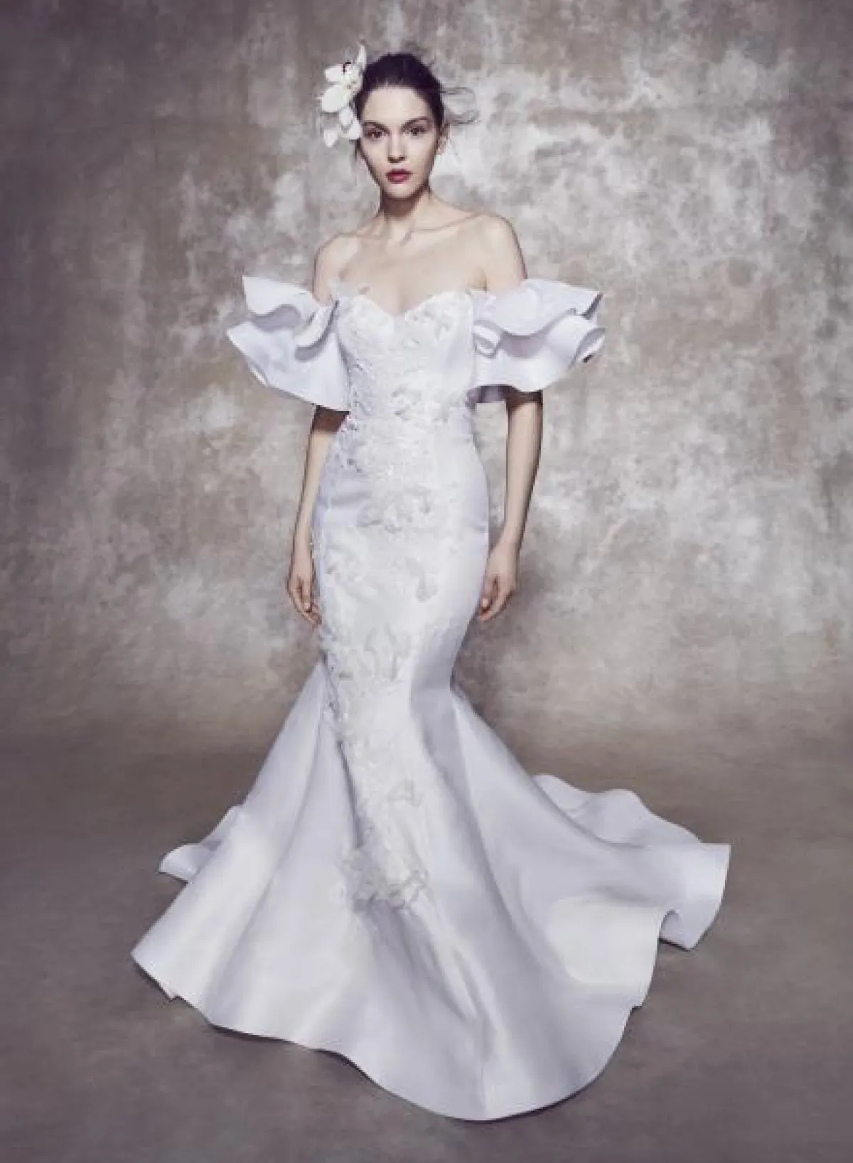 الصيحة الأخرى التي تجعل إطلالة العروس أكثر رومانسية وسحر هي فساتين الزفاف الضيقة بقصّة حورية البحر التي تبرز انحناءات قوام العروس.