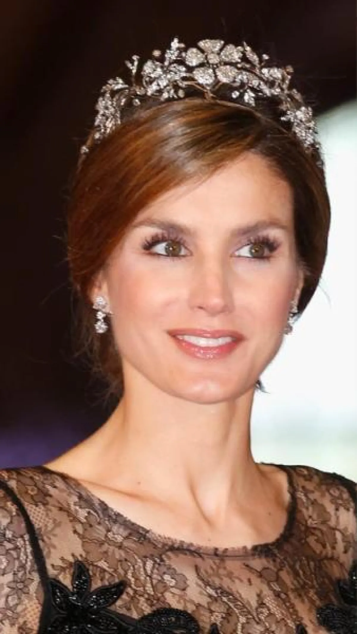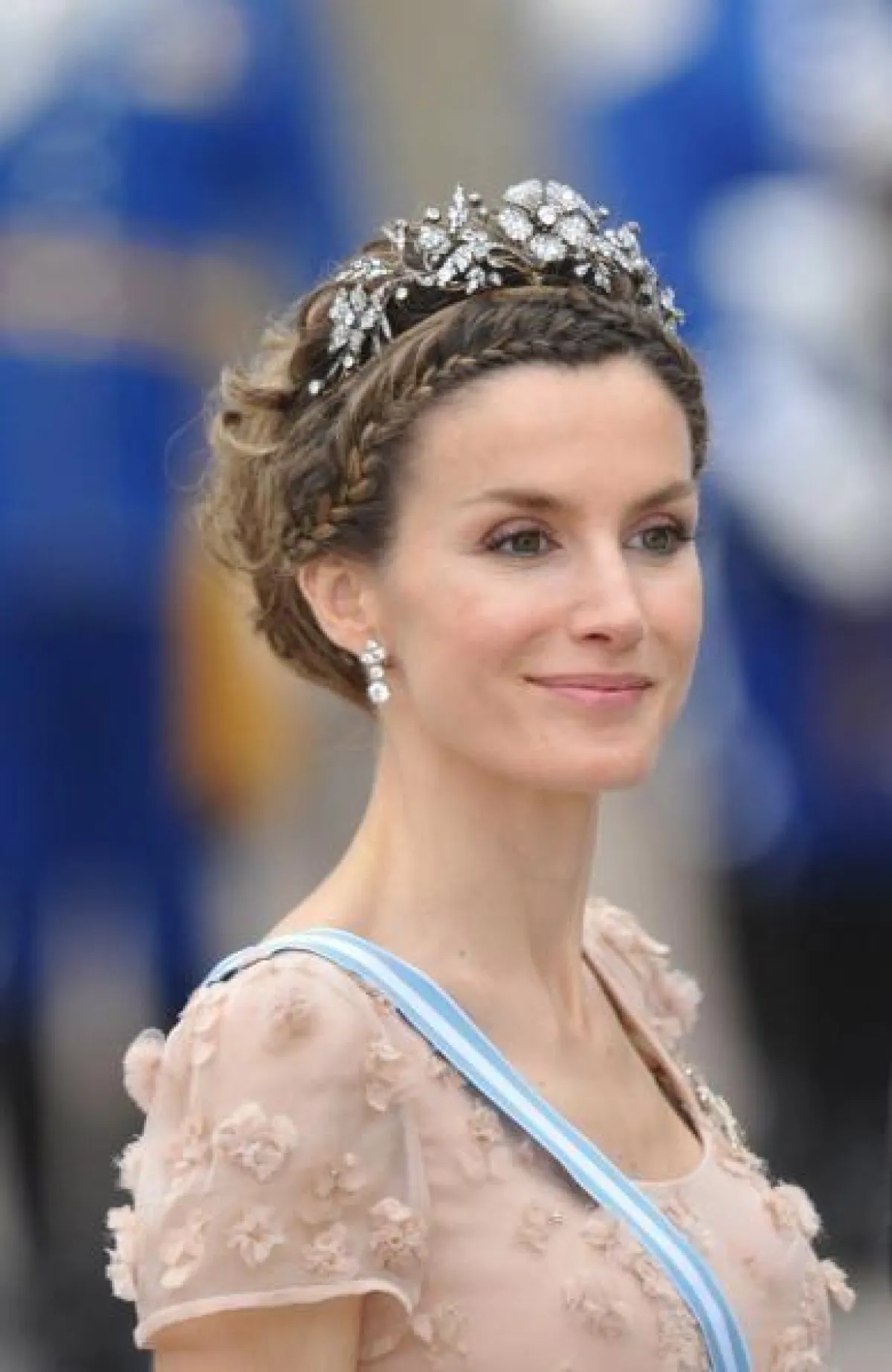 لإطلالة عصرية ومفعمة بالحيوية في يوم الزفاف، يمكن أن تختاري تاج ماسي بتصميم الورود، مثل التاج الذي ظهرت به الملكة ليتيزيا في أكثر من مناسبة.