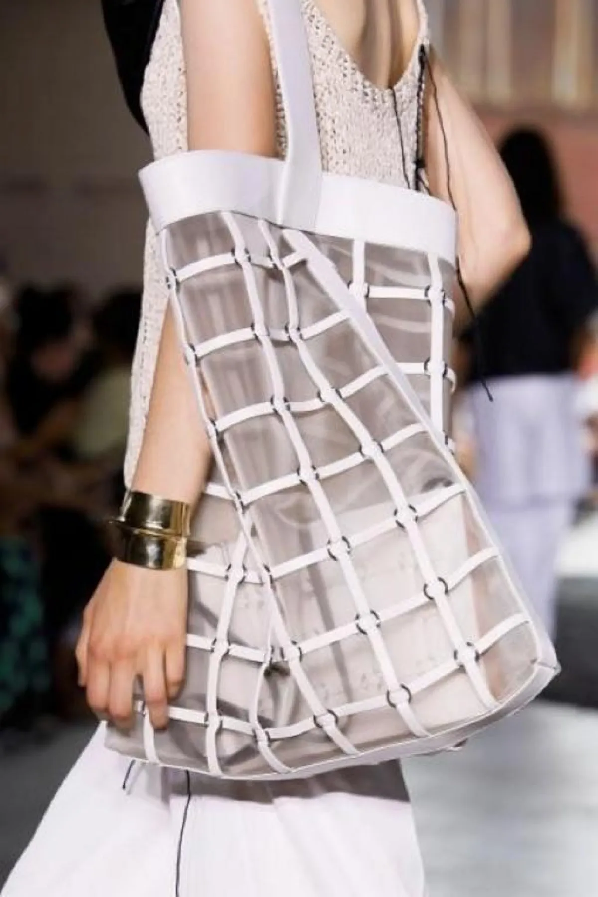 جددًا تثبت شنطة اليد المصممة بخامات شفافة حضورها على خشبات عروض أسبوع الموضة في نيويورك، بعض الماركات قدمتها بأحجام كبيرة مثل تصميم فيليب بيلين 3.1 Phillip Lim، وأدرجتها أسماء آخرى مثل براندون ماكسويل Brandon Maxwell بحجم صغير مزود بسلسال رفيع وطويل يمكنك من حملها عبر الجسم.