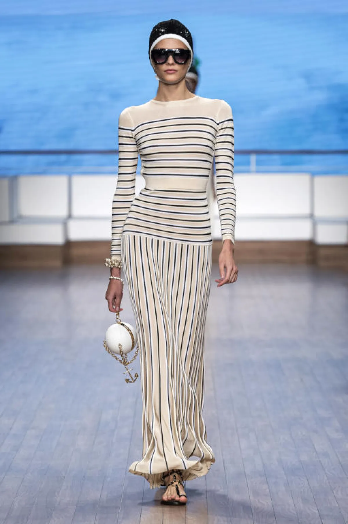 تسير العارضات برشاقة على منصة عرض أزياء عبر الأطلسي، في استحضار للحظات السرمدية الخالدة لأجواء العطلات. وتحتفي الطرازات البحرية ذات الجاذبية الراقية بالحيوية والروح الحرة للمرأة العالمية؛ التي تحب السفر وتتمتع بحضور مفعم بالحيوية وتحب اكتشاف آفاق جديدة مع التركيز بشكلٍ خاص على الرفاهية والانتباه لكافة التفاصيل.