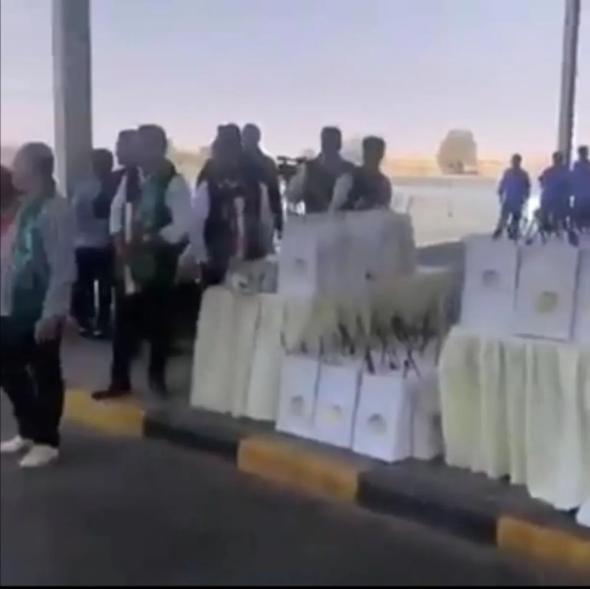 مقطع فيديو لاستقبال جمارك الكويت السعوديين بالهدايا في اليوم الوطني السعودي.