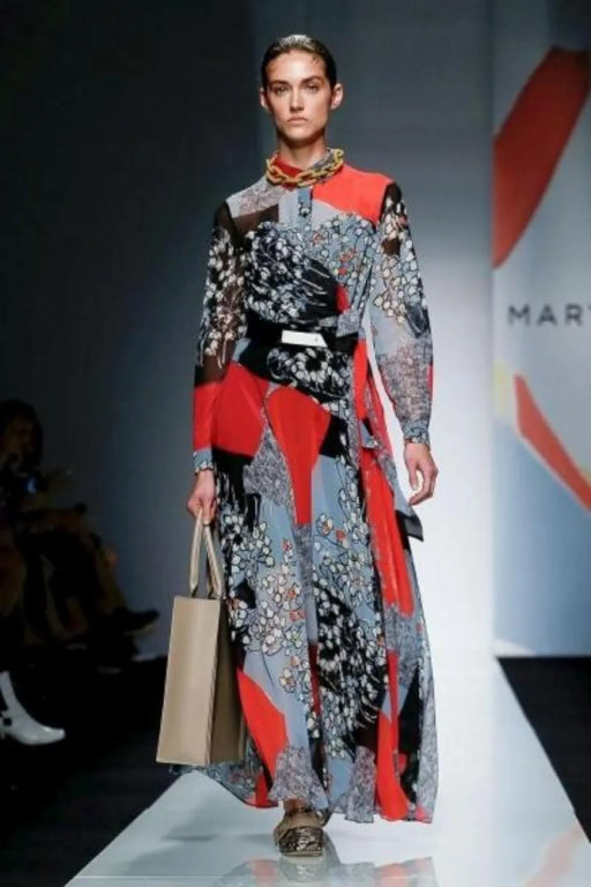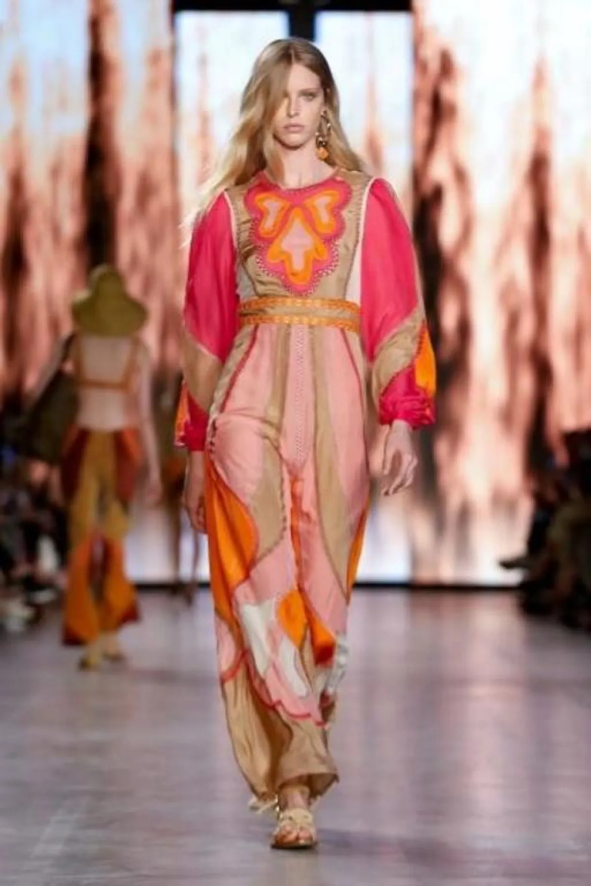تتجلى صيحة هذا الموسم في الفساتين المزخرفة محتشمة القصة وصادفنا أجمل التصاميم لدى Maryling والتي قدمت موديلات تميزت بالتصاميم المتداخلة ولكنها تميزت بالألوان شديدة التناغم، فيما أكتفت ماركة ألبرتا فيريتي Alberta Ferretti بمزج نغمات الوردي الصارخ مع البرتقالي الجرئ والنتيجة قطع صيفية بإمتياز ستنعش إطلالتك.