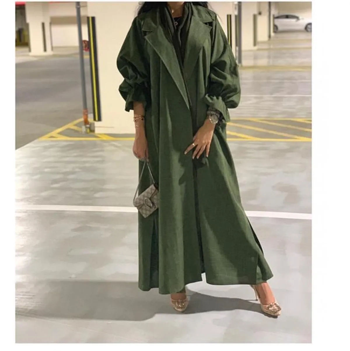 ألوان الخريف كالأخضر العشبي أو الأصفر الخردلي، يمكنكِ اختيارها بتصميمات أنيقة بالعبايات، كهذا الموديل المميز من ABayaby_aj، مناسبة لمشاوير ما بعد الظهر، نسقيها مع الكعب العالي، والشنطة الميني.