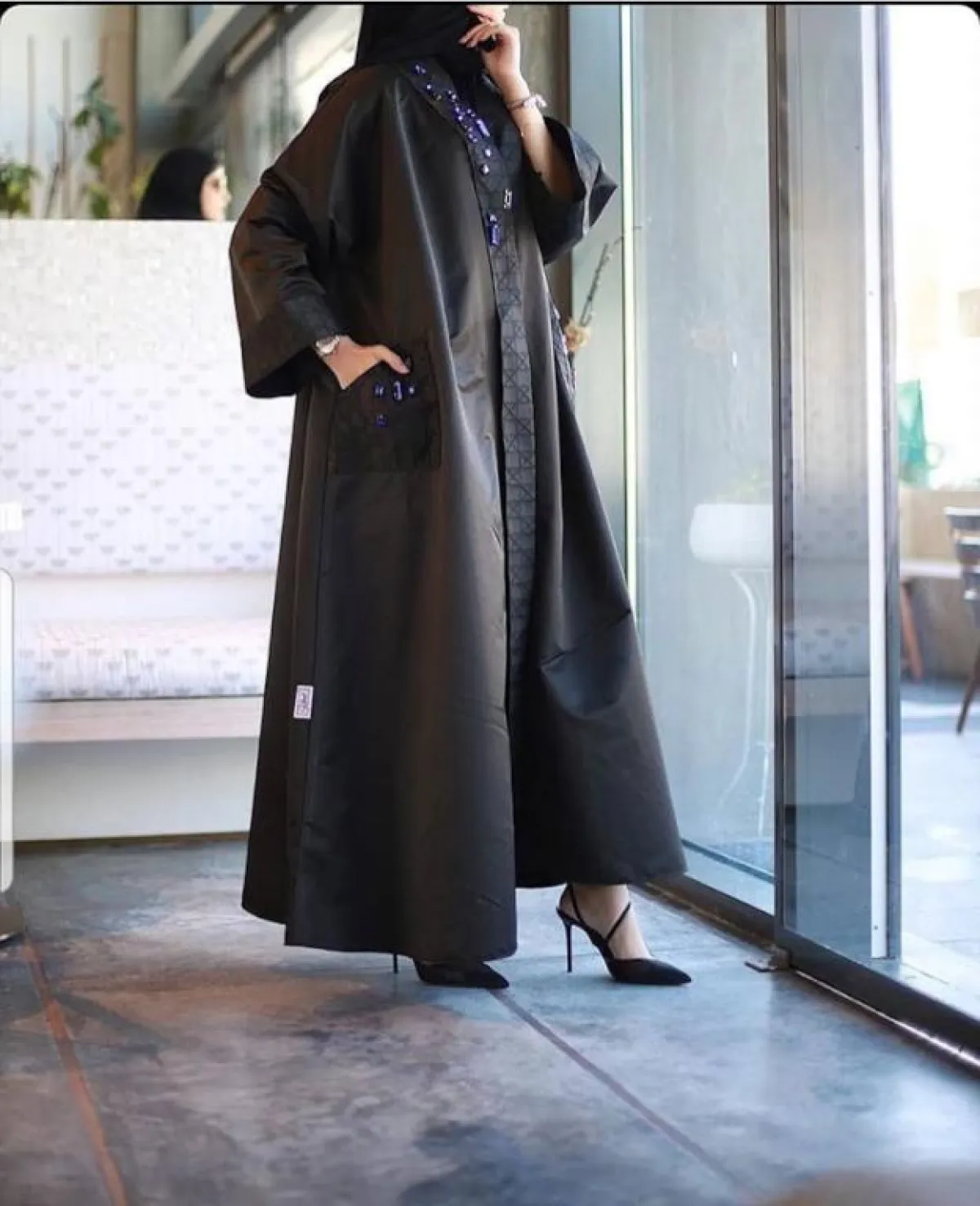 واحدة من أكثر الصيحات التي ننصحكِ بأن تكون بخزانتِك، فلم تعد تقتصر العبايات على الموديل الفخم المطرز، بل سوف نجد لعبًا واضحًا بالتصميمات، مثل الياقة العريضة، كالتي شاهدناها بالعبايه السوداء من Fea Line، بسيطة وهادئة ومناسبة للكثير من مشاويركِ النهارية، نسقي معها ما تشائين من الاكسسوارات الملونة، ولكن يفضل أن يكون الحجاب قصيرًا وبالألوان المحايدة، ليُبرز جمال ياقة العبايه.