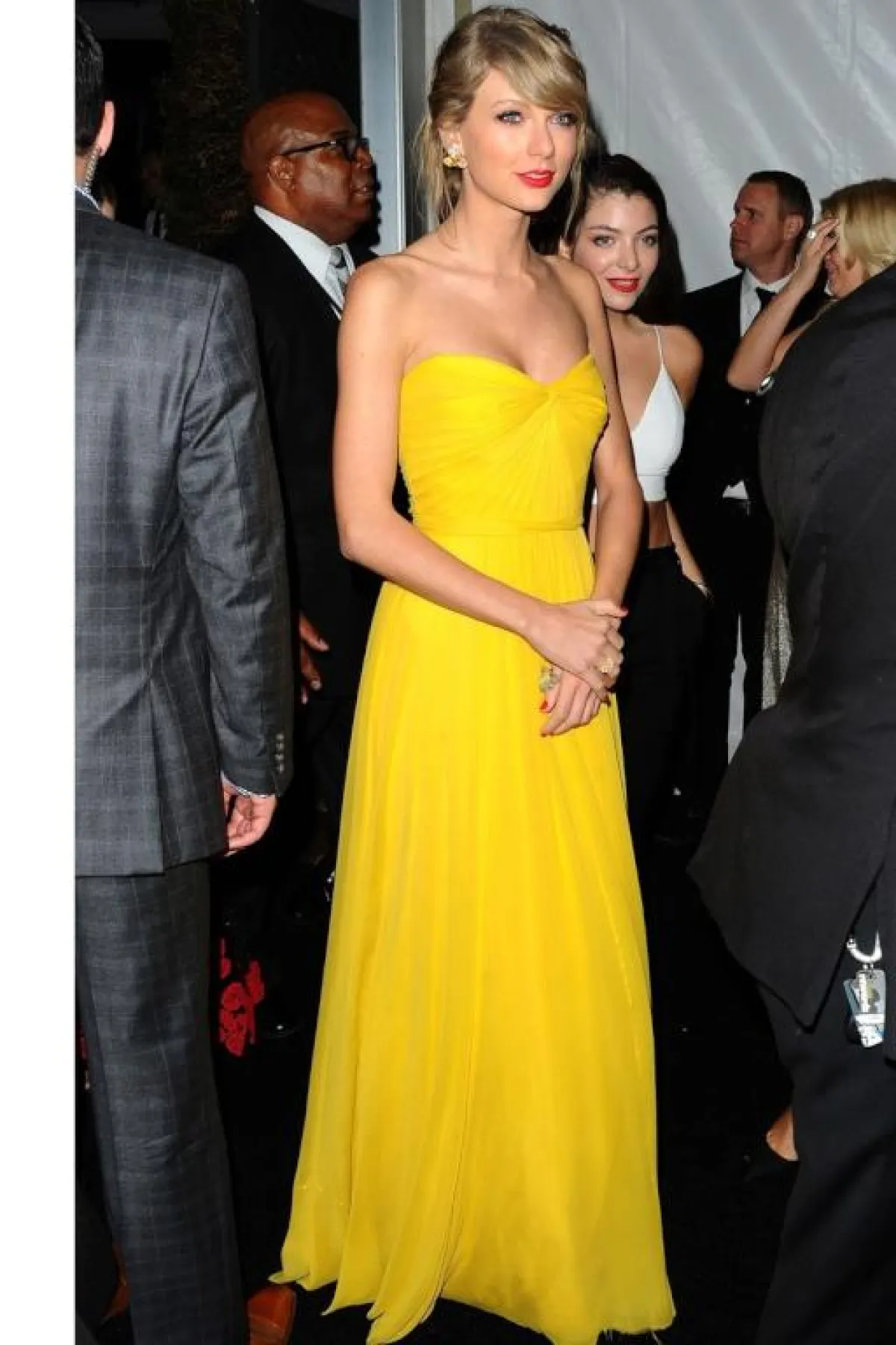 ولكن إن كنتِ تفكرين في فستان بسيط جدًّا، ومنفوش بطريقة هادئة، فمن الممكن أن تستوحي هذا التصميم من Taylor Swift تايلور سويفت، باللون الأصفر الفاقع، ضيق من الخصر، ثم منفوش ومنسدل بطريقة مخملية وناعمة.