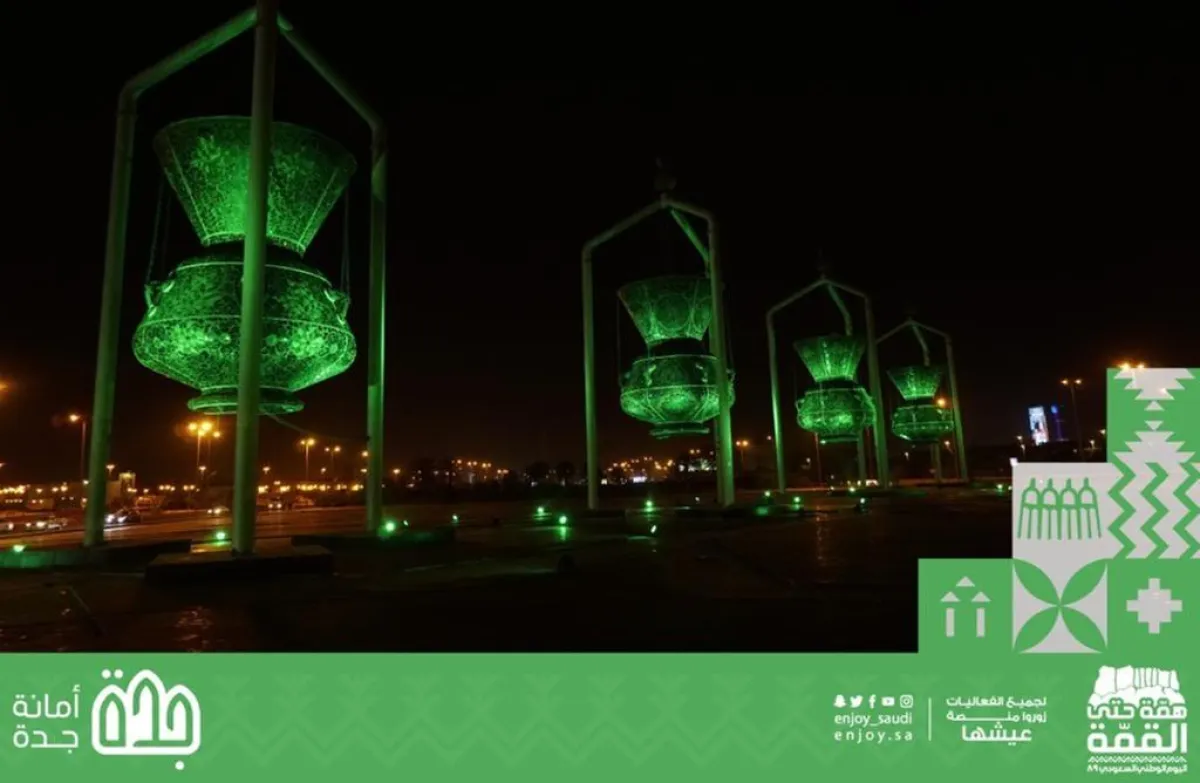 وشهد مبنى الأمانة الرئيسي وكل من ميدان الكرة الأرضية، وميدان القناديل، وبوابات جدة الشمالية والجنوبية وكذلك مباني البلديات الفرعية عروضًا للإضاءة باللونين الأخضر والأبيض فيما سيكون هناك العديد من الفعاليات والاحتفالات وفرق الفنون الشعبية والمسابقات المتنوعة التي سيشهدها كورنيش شاطئ السيف جنوب جدة.