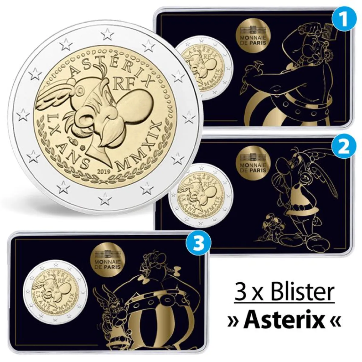 وذكر سكاي نيوز نقلاً عن وكالة فرانس برس، بأن هذا الإعلان يتزامن مع صدر ألبوم جديد لمغامرات أستريكس خلال الشهر القادم تشرين الأول/أكتوبر. وتابعت الوكالة الفرنسية، بأن أنه تم صكّ 310 آلاف عملة نقدية تحمل صورة أستريكس من قبل مؤسسة عملة باريس حتى الآن. وأشارت إلى أن العملة التي تأتي من فئة الـ2 يورو تعتبر الإصدار الأصغر وأنها تكريم للشخصية الكرتونية الشهيرة. وتابعت أن العملة النقدية الجديدة، تحمل صورة جانبية لوجه الشخصية الشهيرة أستريكس بخوذته المُجنحة والمزينة بأوراق نبات الغار.