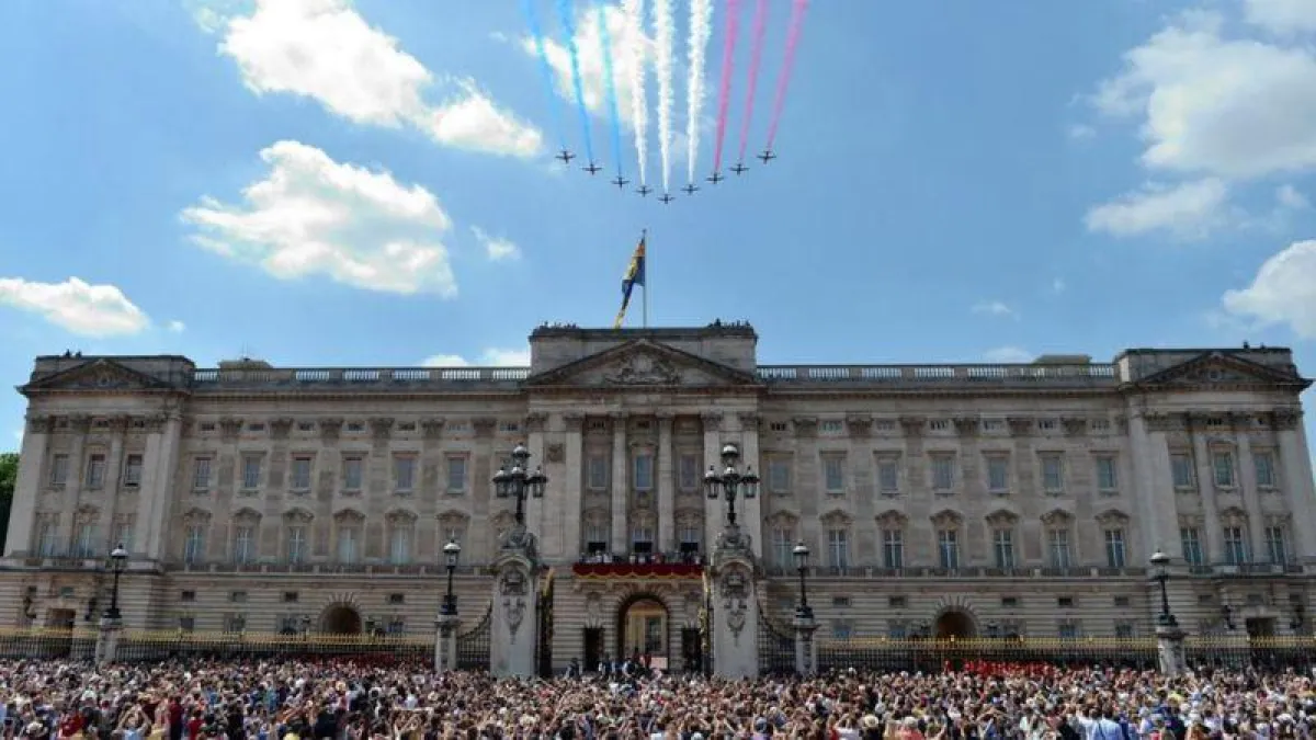 وبعد شهرين فقط، يكرم الجميع الملكة مرة أخرى في السبت الثاني من شهر يونيو وهذه المرة يأتي الاحتفال بشكل باهظ ومع عدد لا يحصى من الأشخاص الذين يشاركون في حفلة المرح، حيث ذكرت هيئة الإذاعة البريطانية أن الاحتفال يقيمه 1400 جندي و400 موسيقي و200 حصان.. وتقيم العائلة المالكة في هذا اليوم عرضًا عسكريًا، حيث تغادر الملكة قصر باكنجهام في عربة تجرها الخيول بينما يهتف المشجعون، وتتجول في المركز التجاري، وبعد ذلك، يظهر أفراد العائلة المالكة في شرفة قصر باكنغهام.