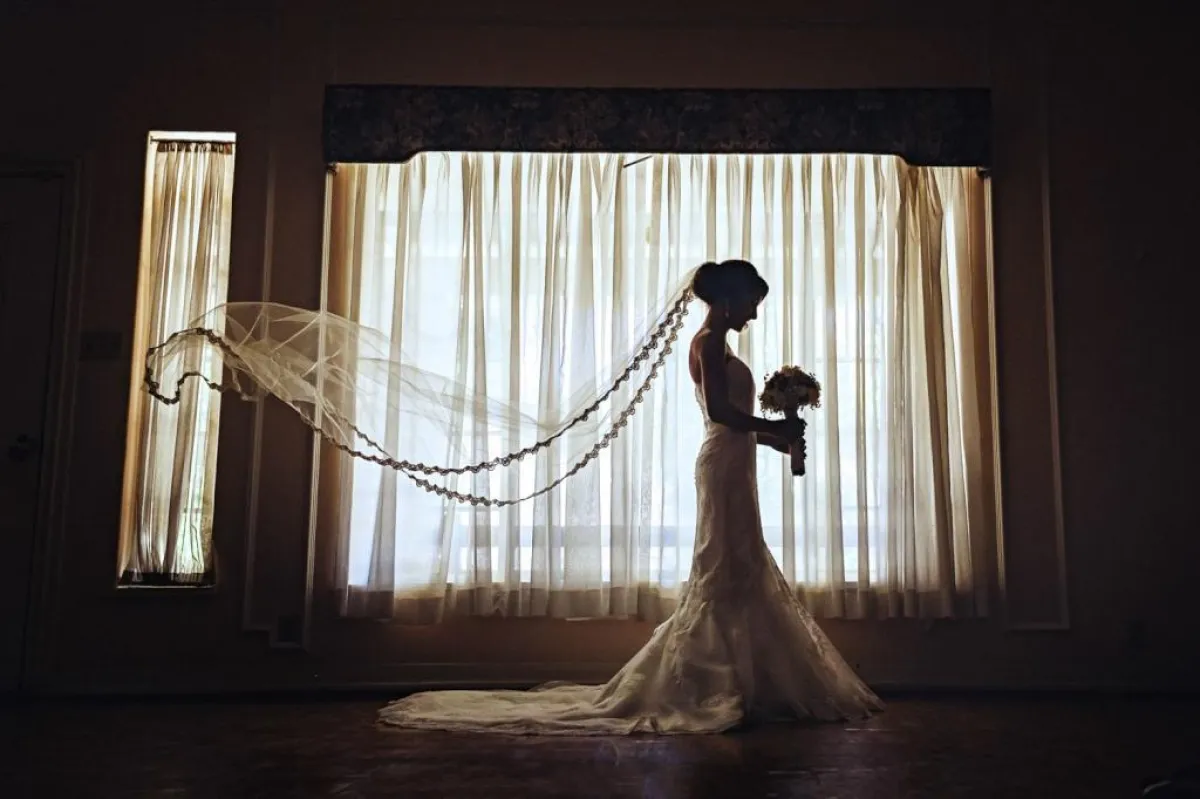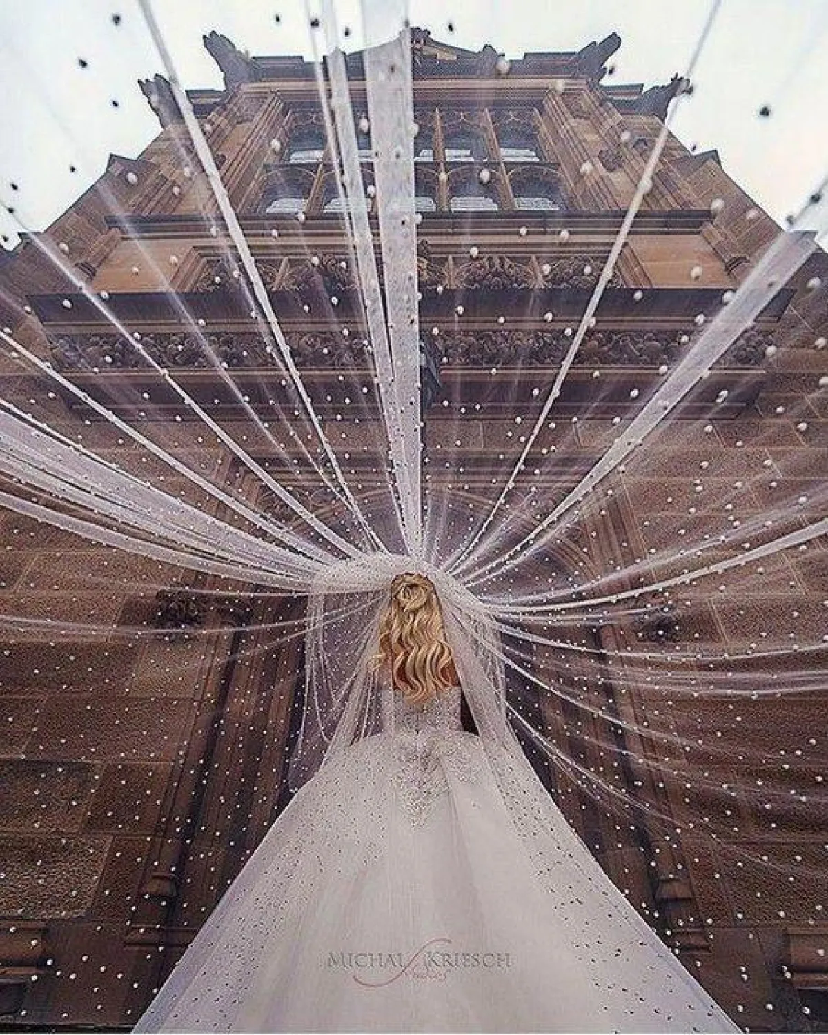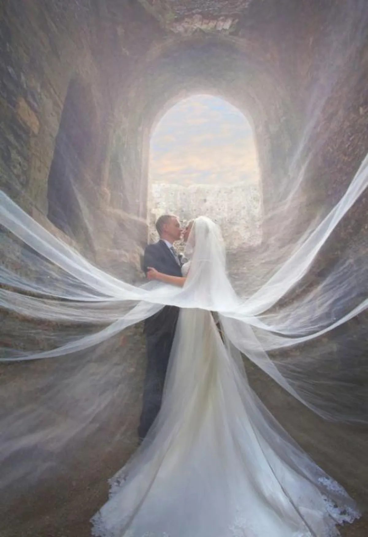 - أيضًا الصور التي تكون فيها طرحة العروس هي الأبرز، من الممكن أن تُستخدم كرمزيات عروس أنيقة معبرة عن البهجة والرومانسية.