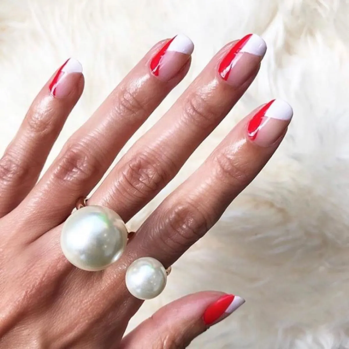 إذا كنت من محبات المناكير الفرنش، فلا تترددي في اعتماده هذا الشتاء، مع إضافة لمسة مميزة إليه من خلال تطبيق المناكير الأحمر اللامع على طرف الظفر وبشكل طولي. ننصحك باستخدام Butter London Patent Shine Nail Lacquer in Her Majesty's Red و Chanel Les Vernis Longwear Nail Colour in Pure White.
