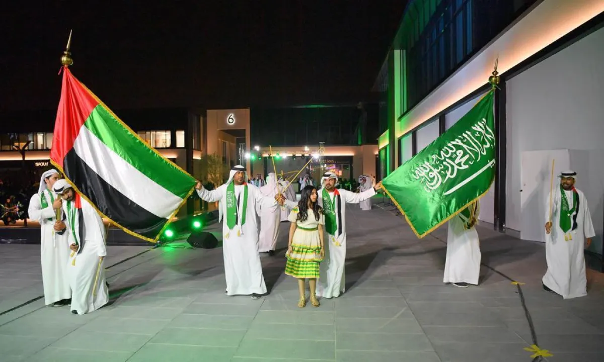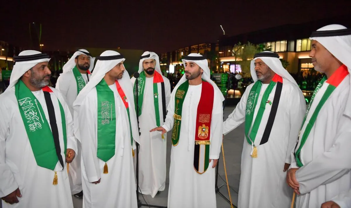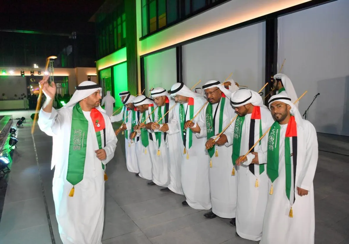 كما قام منسوبو سفارة دولة الإمارات في الرياض بالاحتفال مع أشقائهم السعوديين بهذا اليوم، والتعبير عن فرحتهم بالأهازيج والرقصات التي أدخلت السرور على قلوب كل الحاضرين صغارًا وكبارًا.