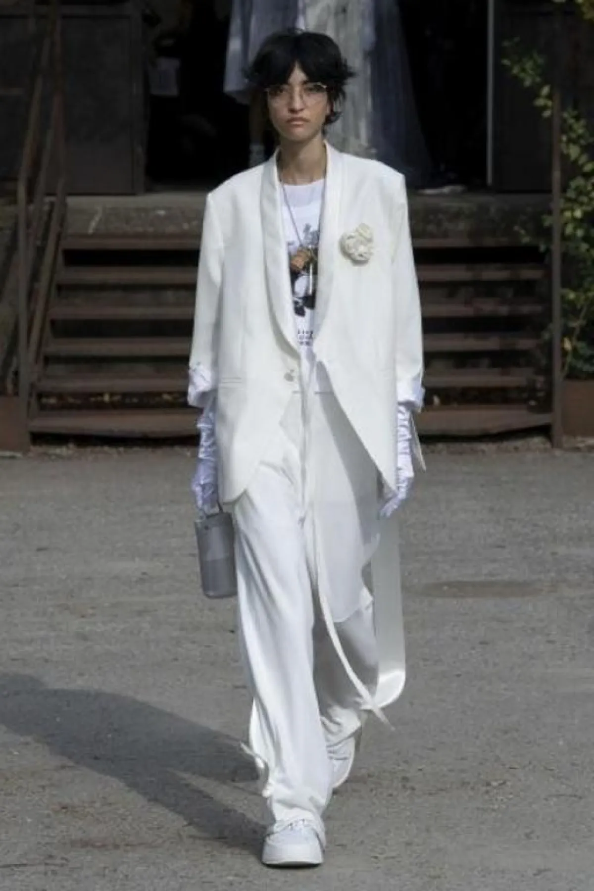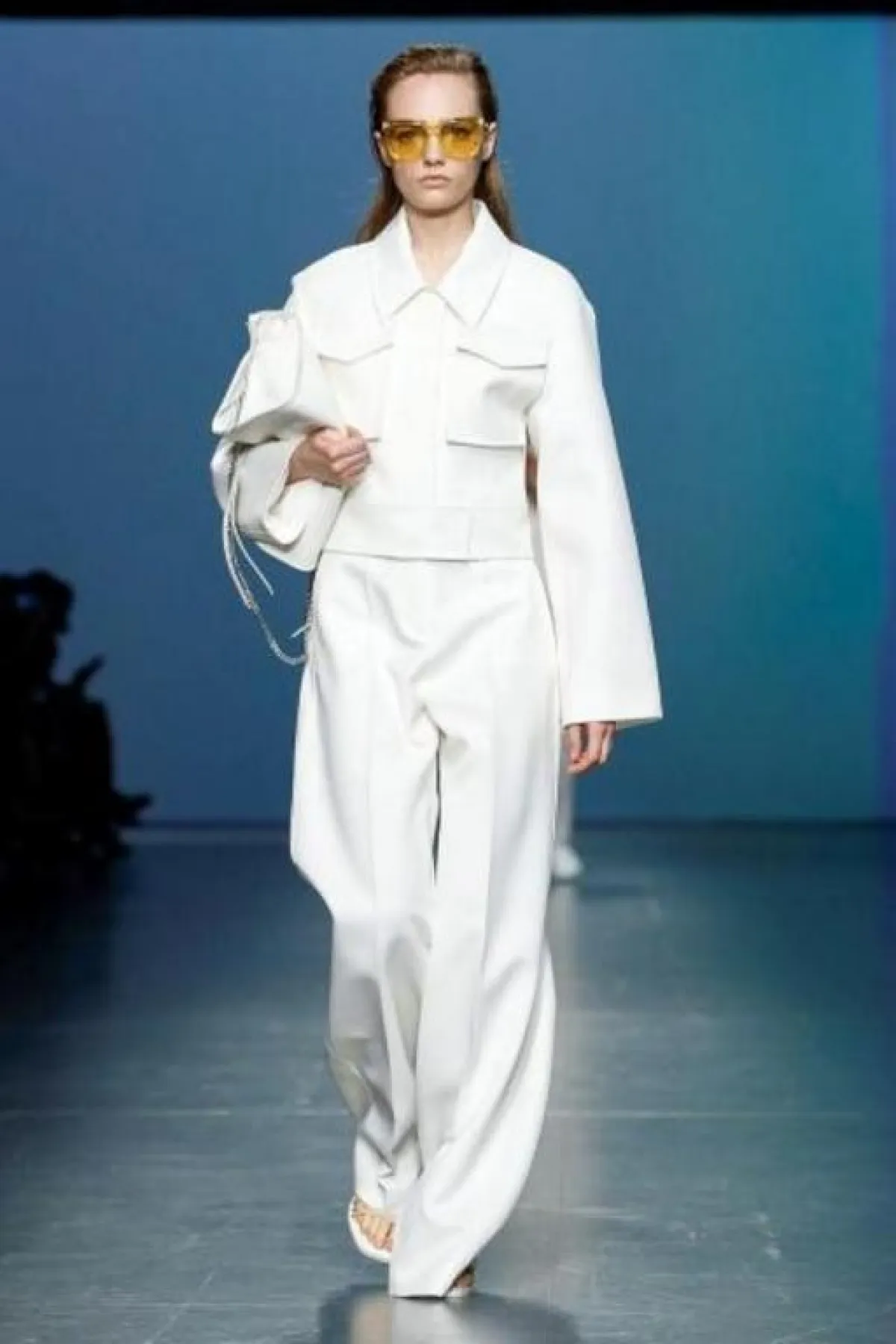 كانت البدلات البيضاء نجمة أسبوع ميلانو، أحببنا الموديلات الواسعة المزودة بصدرية من توقيع ماكس مارا Max Mara كما أعجبتنا بدلات ماركة Boss المؤلفة من بناطيل واسعة Wide leg pants وسترات قصيرة تغطي بالكاد خصر البنطال والتي تحيي موضة السبعينات.
