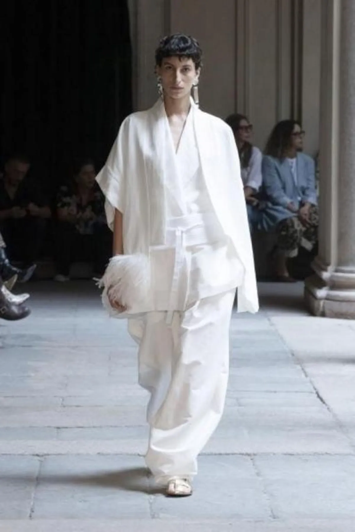 ملابس واسعة بالأبيض من أسبوع الموضة في ميلانو