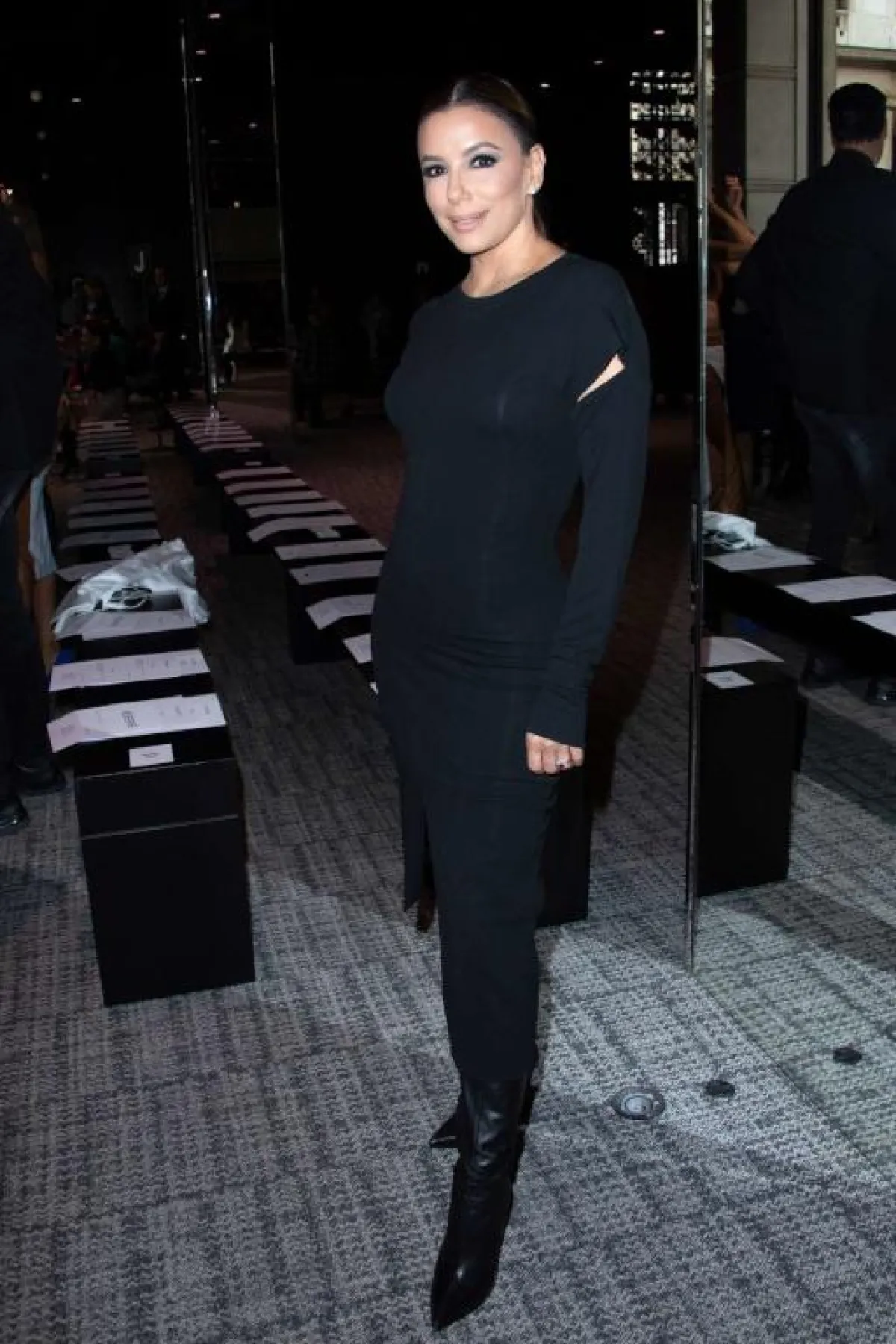 كايت موس في لوك عصري بالأسود في عرض سانت لوران: