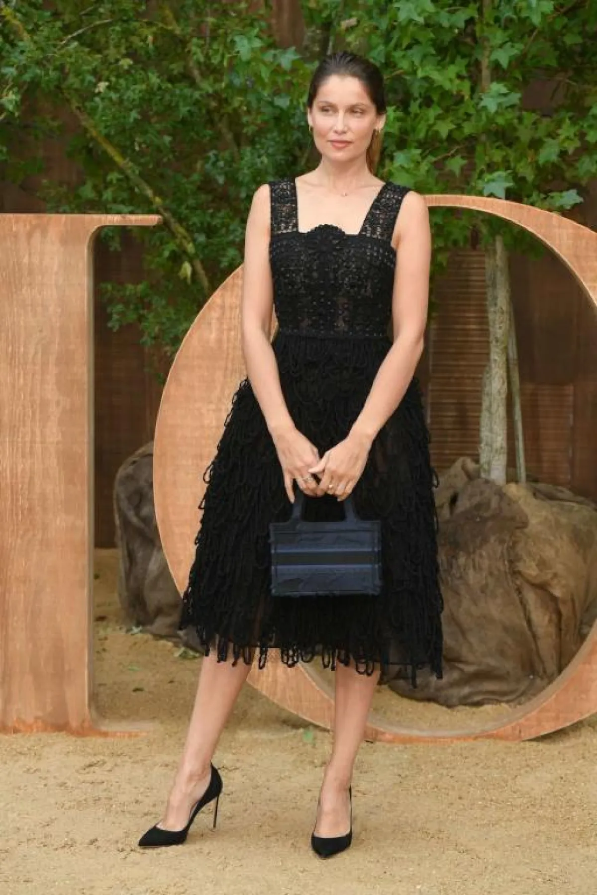 مونيكا بيلوتشي Monica Bellucci حضورهاَ آثر حتى في الأسود، وقد تألقت مؤخرًا في عرض دار ديور Dior بهذا اللون، وقد اختارت فستان ماكسي من قماش الشيفون له شق طويل على الساق، وقد زينته بحزام عريض على الخصر، وأكملت اللوك بحقيبة كلاتش ونظارات شمسية كبيرة.