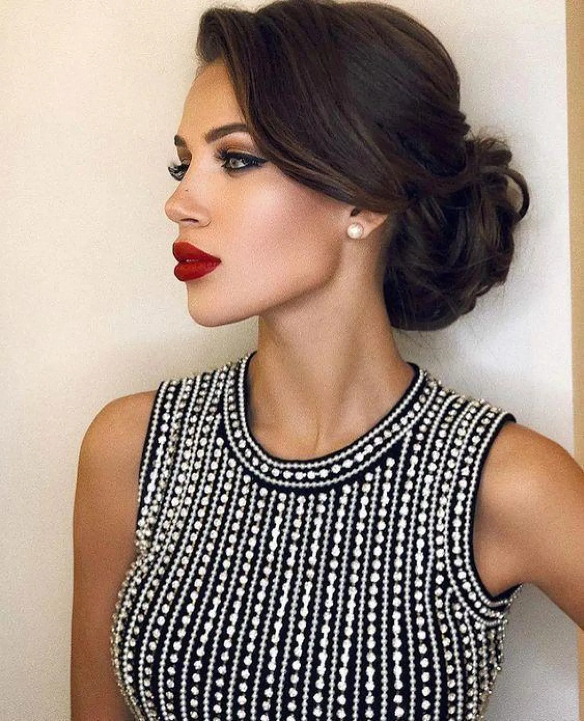 تسريحات الريترو يناسبها كثيرًا تسريحة الغرة المنفوخة، لاطلالة مستوحاة من الستينيات، من الممكن أن تجريها على جنب، بطرقة ملفوفة وكلاسيكية، تناسب فستانكِ الفخمة.