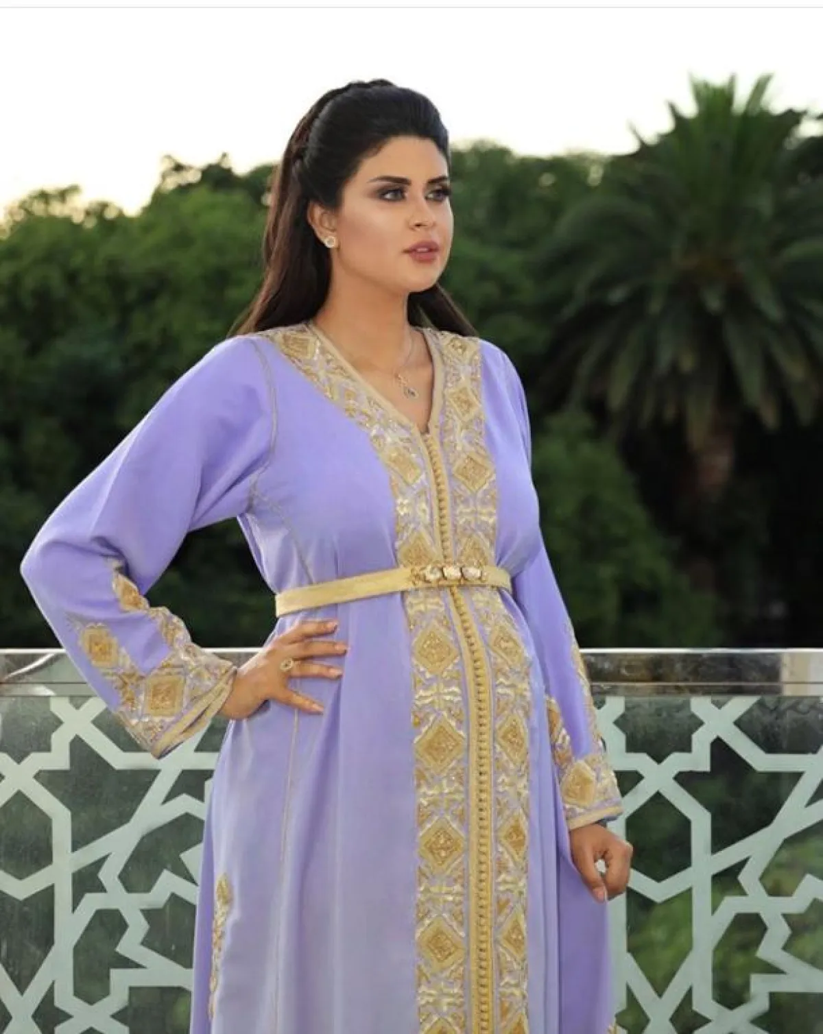 سلمى بن رشيد بقفطان أزرق ليلكي ناعم
