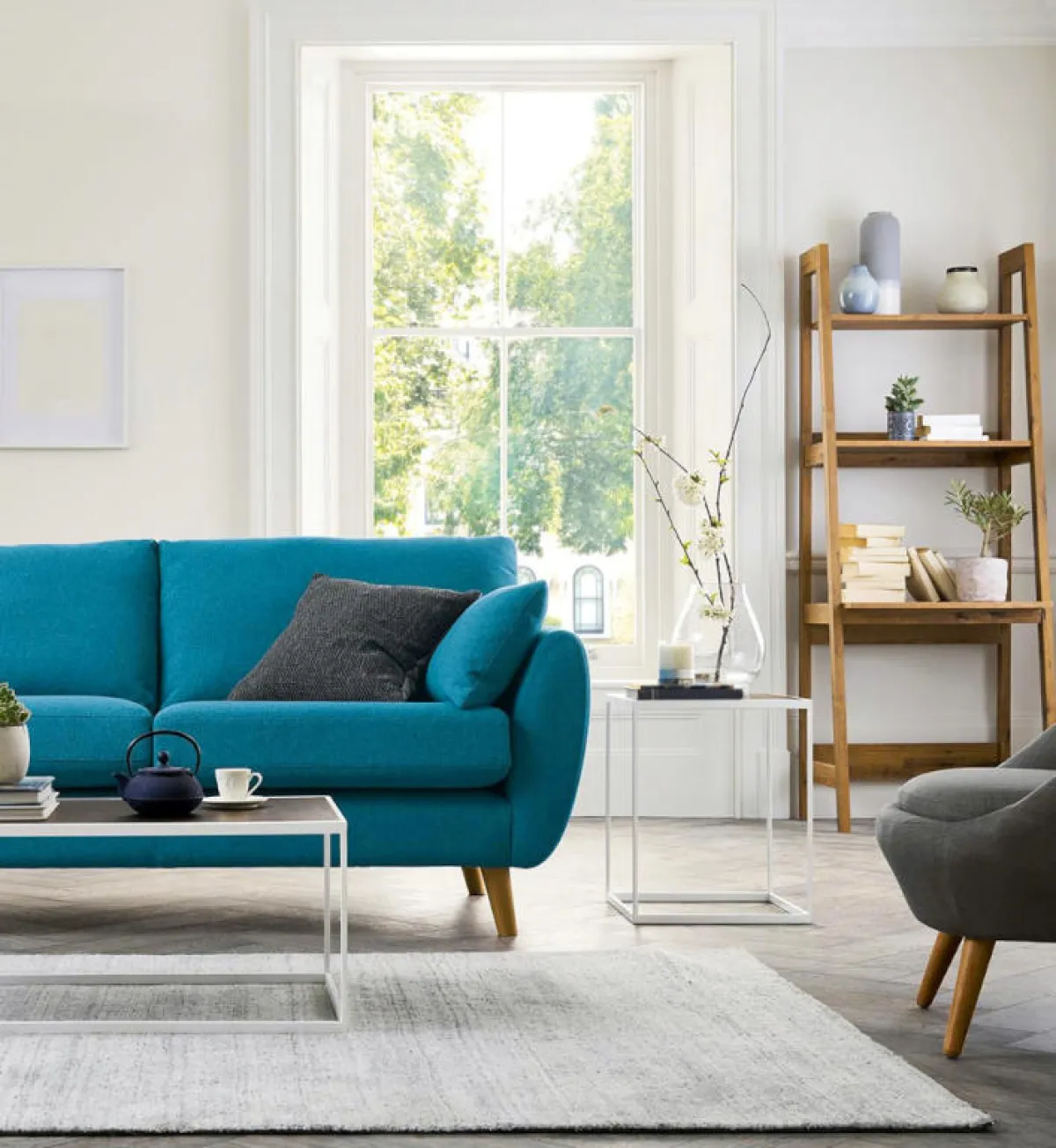 في غرف الجلوس، يُحبَّذ اختيار الأرائك المريحة، مع الاكتفاء بلون لها أو لونين كحدّ أقصى