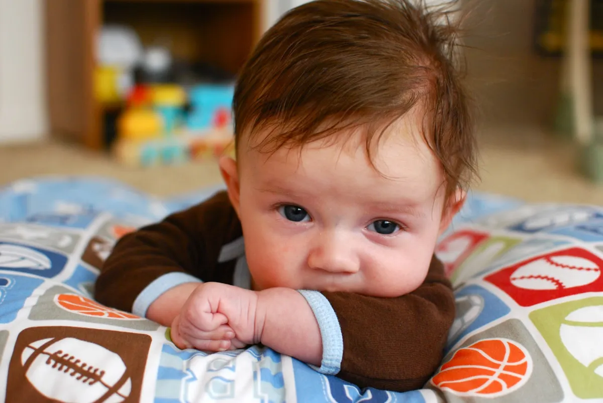 - قدرة طفل الشهر الثالث في رفع رأسه: عندما ينام طفل الشهر الثالث على بطنه، يبدأ في رفع رأسه لمدة دقيقة ليس أكثر، وعندما ينام على ظهره، يبدأ في تحريك يديه وقدميه بشكل أكبر، ومن الممكن أن يبدأ في تحريك جسمه بالكامل من مكان نومه في سريره، ولكن لا يمتلك القوة على التقلب على جانب آخر، إلا أن هناك بعض الأطفال لديهم القدرة على التقلب على الجانب الآخر في الشهر الثالث.