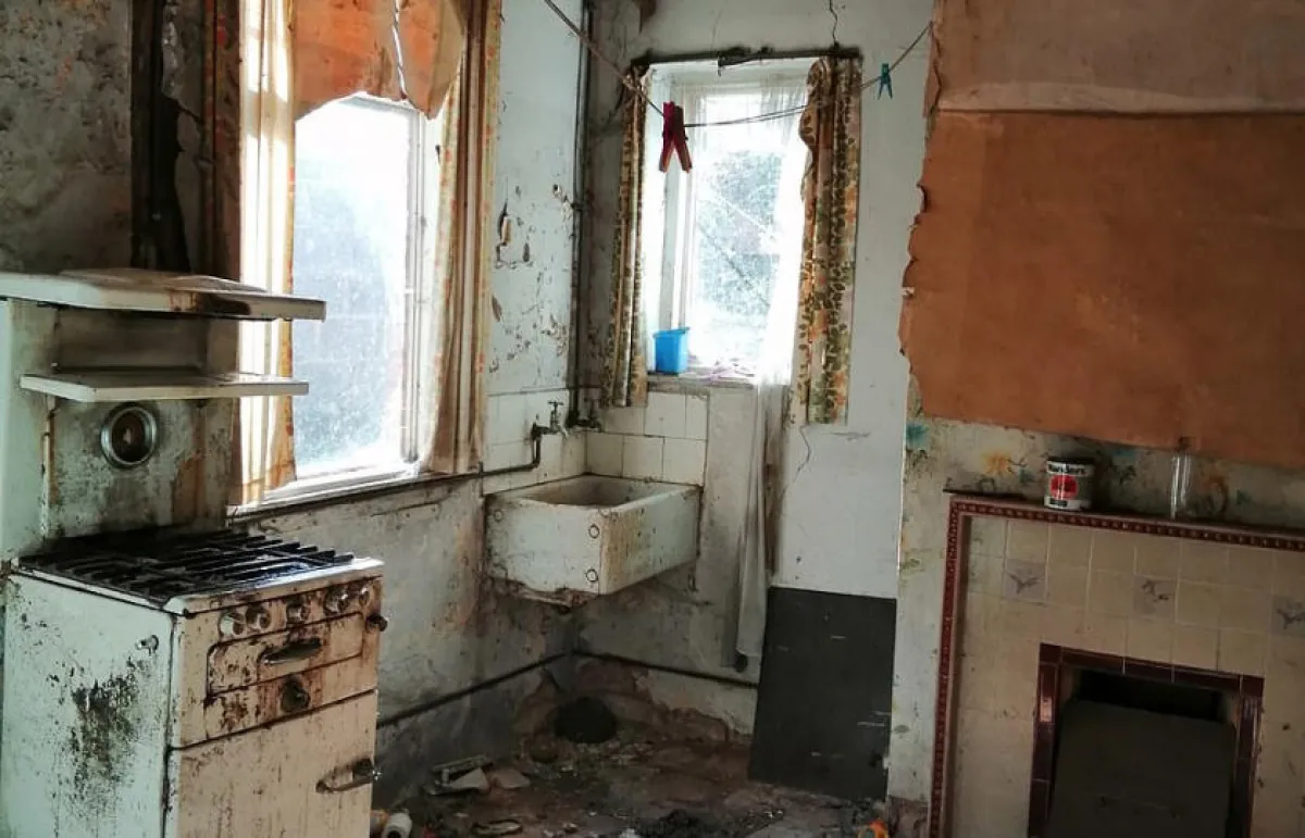 وحظي قسم العقارات بالصحيفة البريطانية «ديلي ميل» بنظرة حصرية على هذا المنزل، وهو كناية عن بيت في صف من المنازل المتلاصقة، وصفته شركة العقارات SDL Auctions Bigwood بـ «العقار المريع».