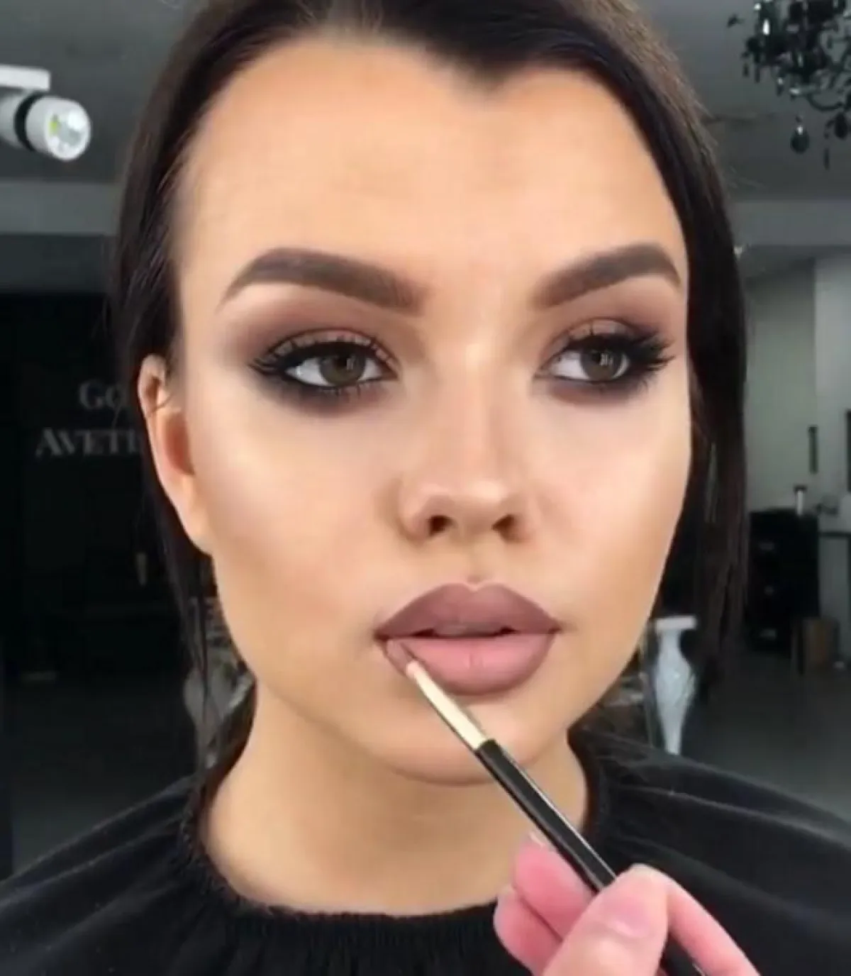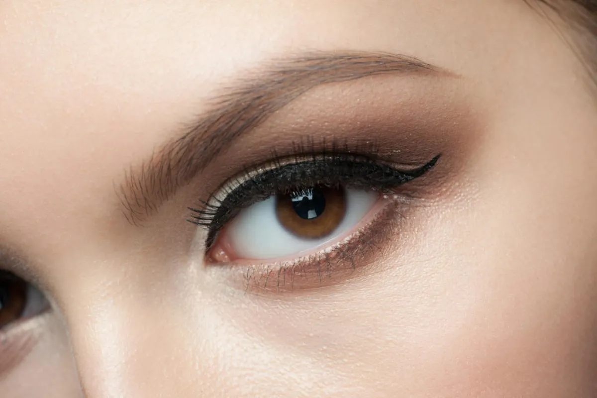 استخدمي قلم الكحل الاسود وارسمي به خطا نحو الأعلى في زاوية العين الخارجية، وبواسطة فرشاة صغيرة قومي بتوزع اللون وتمويهه، استخدمي درجة أغمق من البني ومرريه فوق الجفن ولكن عند الأطراف. ضعي ظلالا باللّون البني عند طرف العين وقومي بدمجه مع الظل البني الداكن. ضعي فوقهما ظلال بلون البني بدرجة اغمق ومرريه من وسط الجفن المتحرك للعين باتجاه الخارج. في الزاوية الداخلية للعين طبقي ظلالا باللون البني اللماع او البرونزي.
