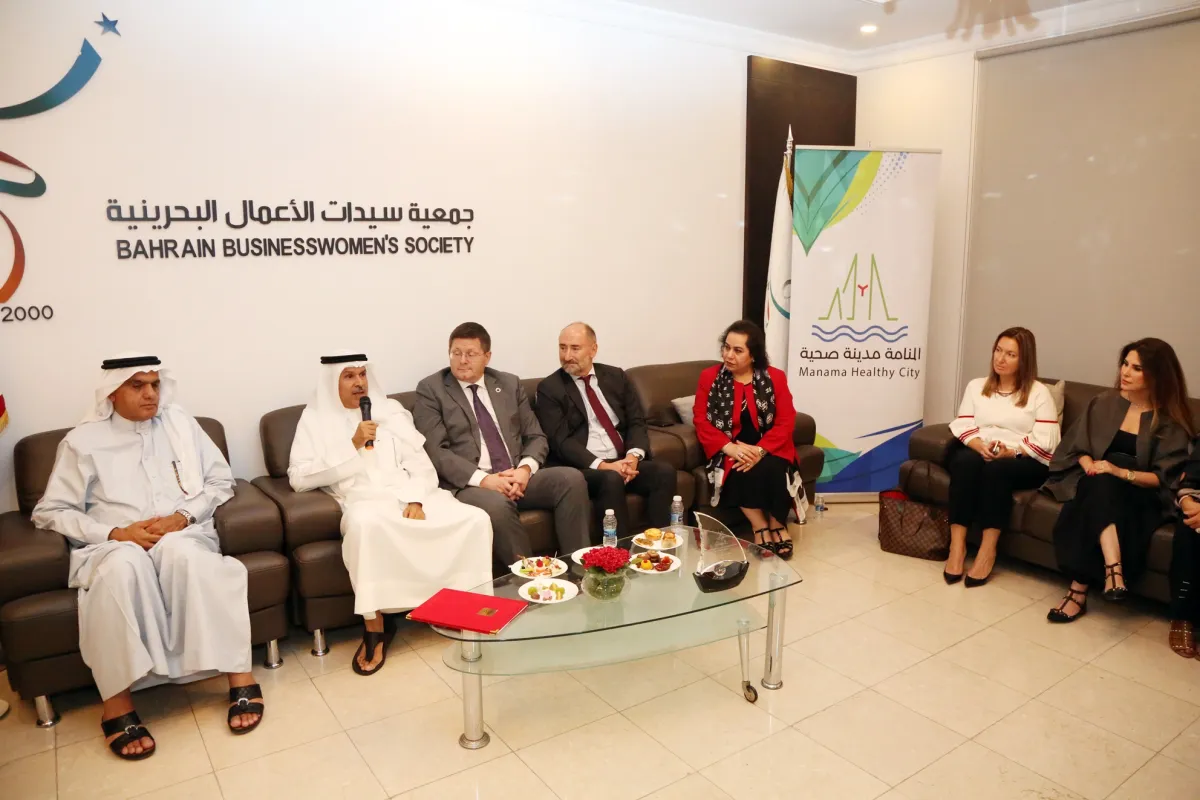 استقبلت رئيسة جمعية سيدات الاعمال البحرينية أحلام جناحي وعضوات الجمعية ، الشيخ هشام بن عبد الرحمن آل خليفة محافظ محافظة العاصمة ، ليكون ضيف شرف المجلس الاقتصادي الشهري الذي يقام بمقر ألجمعية ، وذلك لإطلاعهن على برنامج المدن الصحية والمرتكزات الإيجابية التي يقوم عليها البرنامج لدوره نحو تعزيز الصحة عبر تحسين الجوانب البيئية والاجتماعية والاقتصادية في كافة المجالات ، وتعزيز أنماط الحياة الصحية والوقاية من ألأمراض وتقوية الروابط الاجتماعية وتعزيز التعايش بين أفراد المجتمع