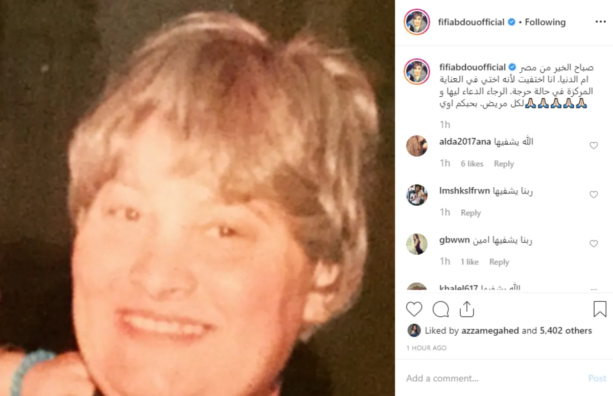 فيفي عبده كشفت للمرة الأولى عن صورة لشقيقتها، عبر حسابها على موقع إنستقرام، وعلقت قائلة: صباح الخير من مصر أم الدنيا انا اختفيت لأن أختى فى العناية المركزة فى حالة حرجة، الرجاء الدعاء لها و لكل مريض بحبكم أوى.