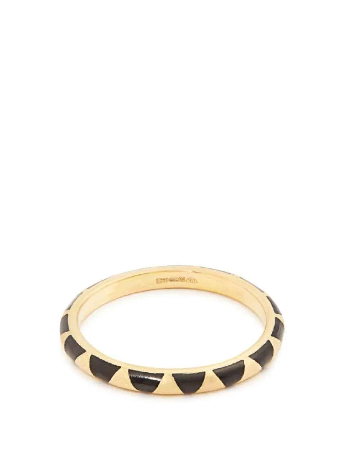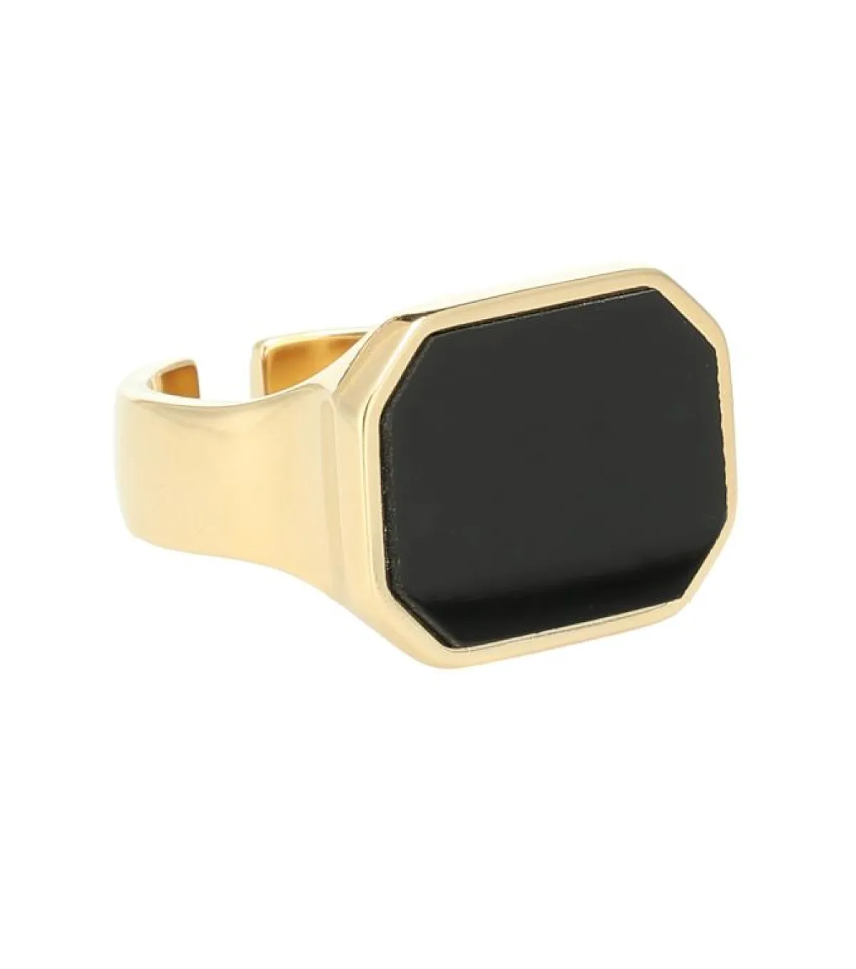 اذا كنت من اللواتي يفضلن المجوهرات الضخمة والكبيرة، فهذا الخاتم من Isabel Marant هو طلبك. فقد جاء باللون الذهبي مع حجر كبير تصدر وجه الخاتم باللون الأسود.