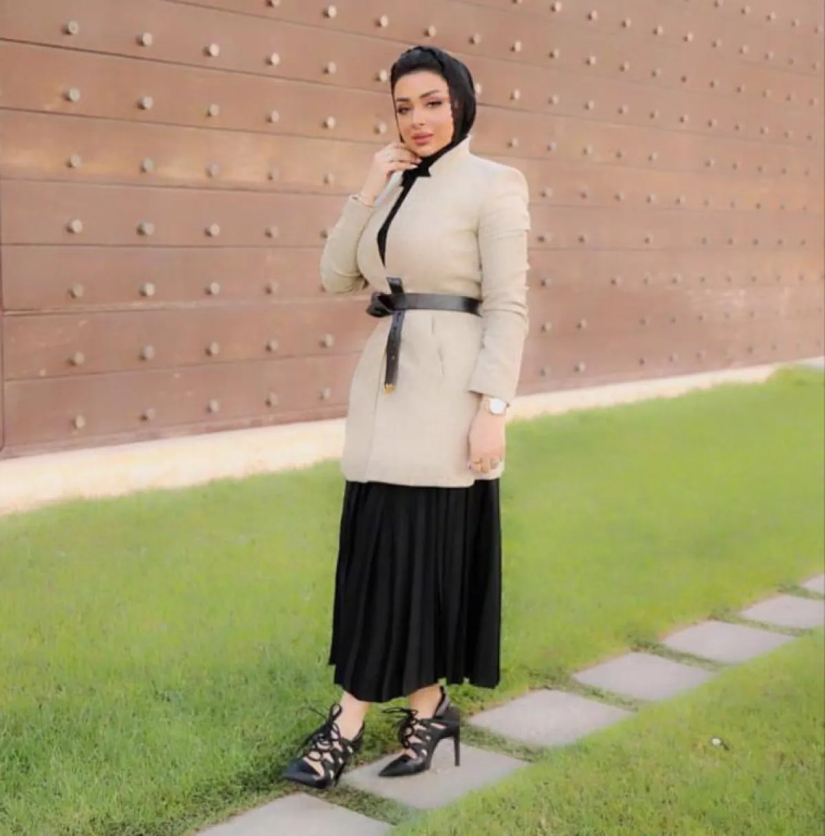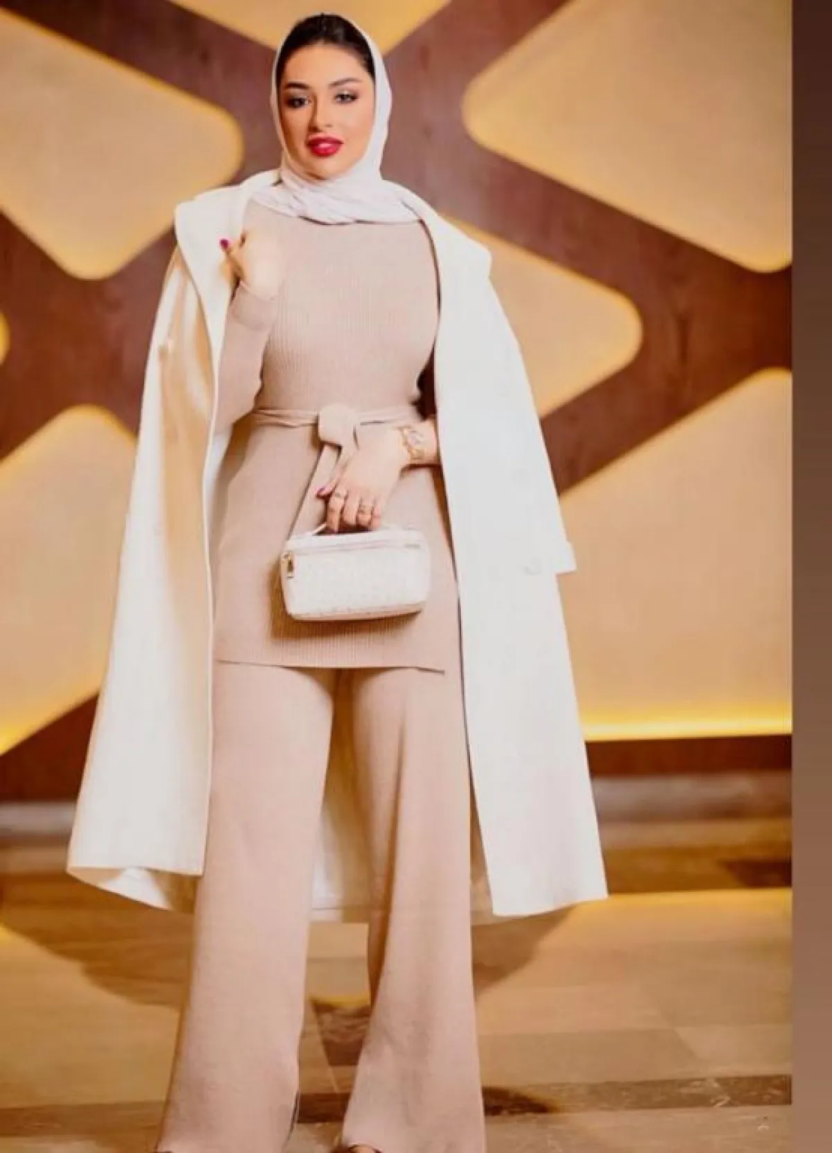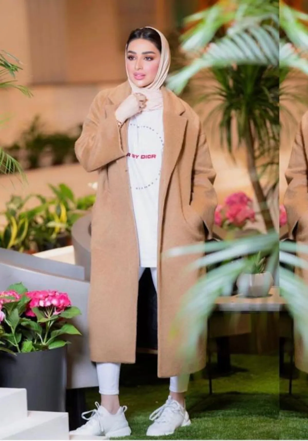 فيما ظهرت بإطلالات أكثر شبابيةً وأنوثة، منها معطف طويل أزرق وحذاء أبيض بكعب مميز، ومعطف طويل أسود وبلوزة بيضاء طويلة مربوطين بحزام أصفر مزين بكتابة سوداء، وأطلت بعباءة بنية مزينة بأزرار حمراء وشرائط، وتألقت بجمبسوت أسود بقماش مميز وحزام خصر، ونسقت معطفًا أبيض طويلاً مع بنطال وبلوزة باللون الزهري، واختارت معطفًا بنيًّا مع بنطال وبلوزة باللون الأبيض، وتجملت ببنطال جينز وبلوزة فوشيا وجاكيت سكري، وارتدت معطفًا طويلاً أصفر مع بنطال جينز وبلوزة بيضاء برسومات، وتزينت بجمبسوت أبيض عاكس للألوان مع بلوزة بنية وحذاء نيون.