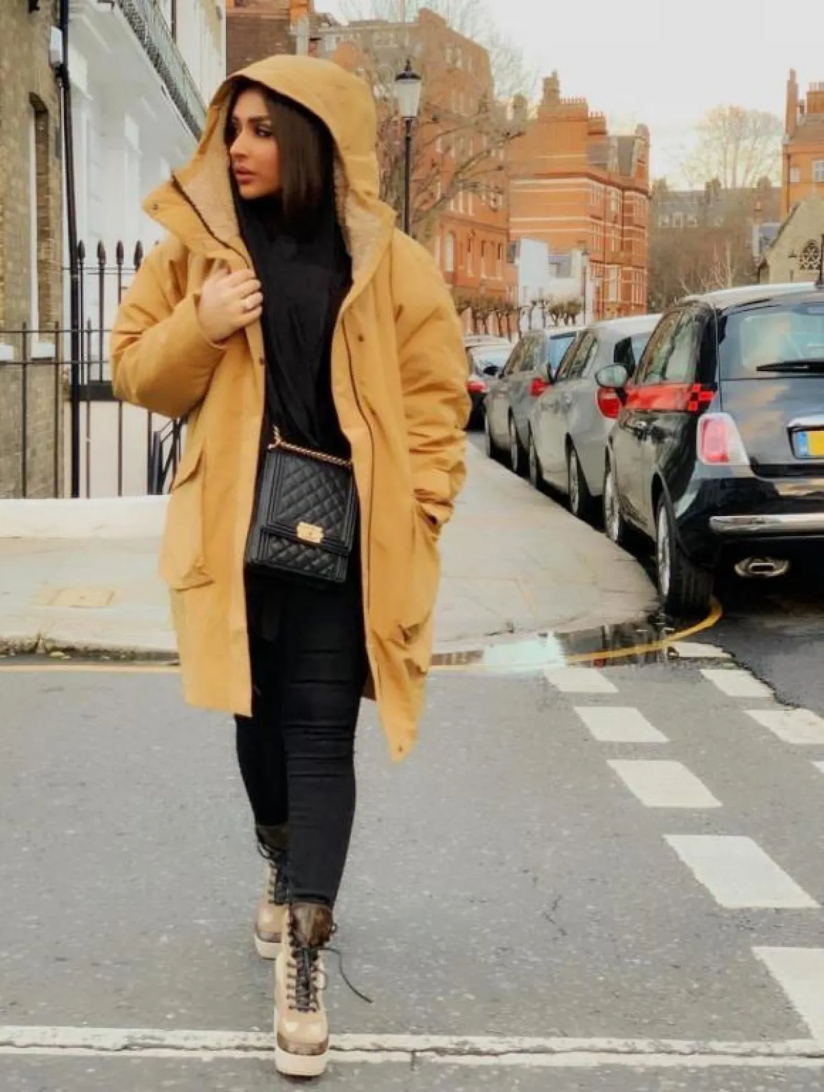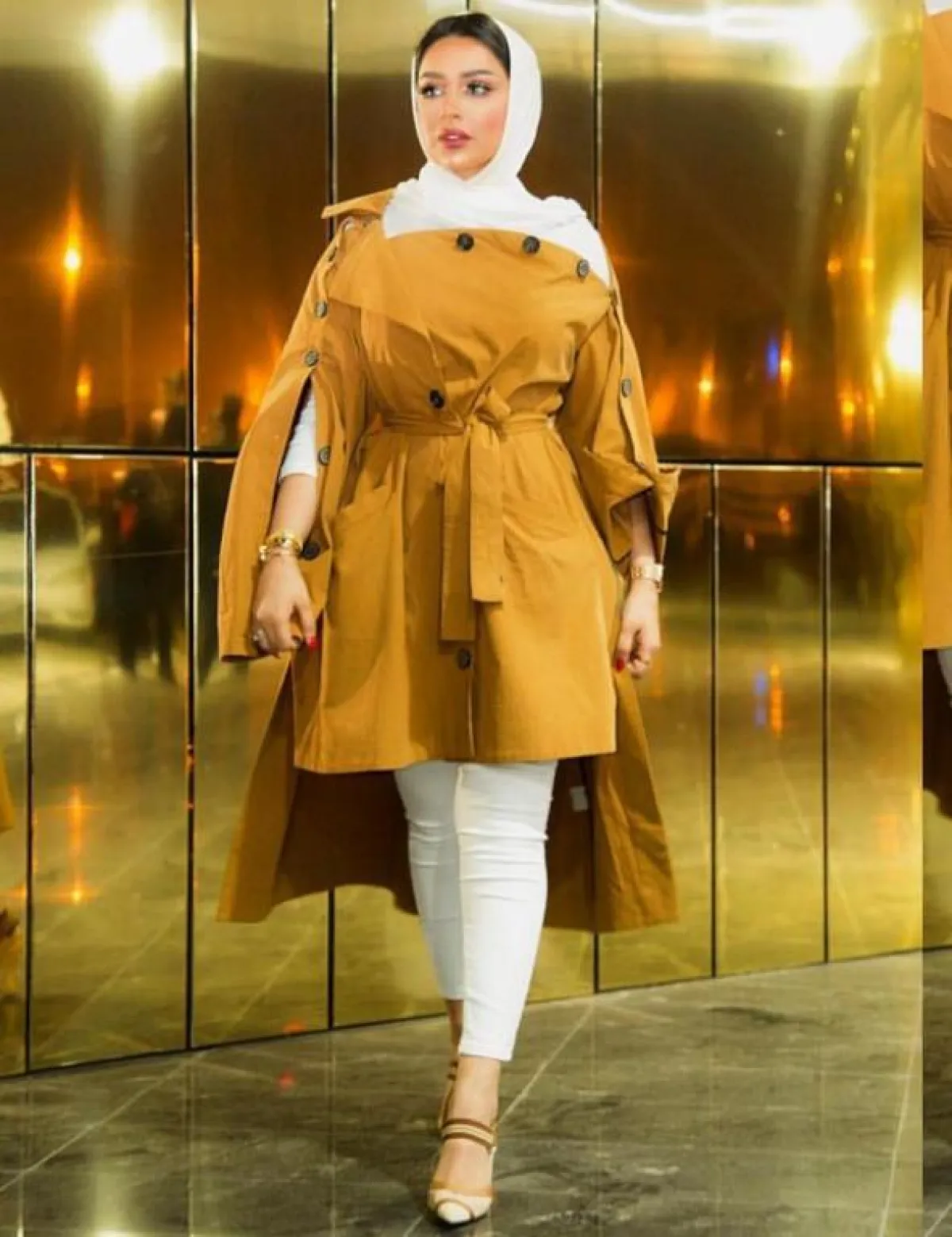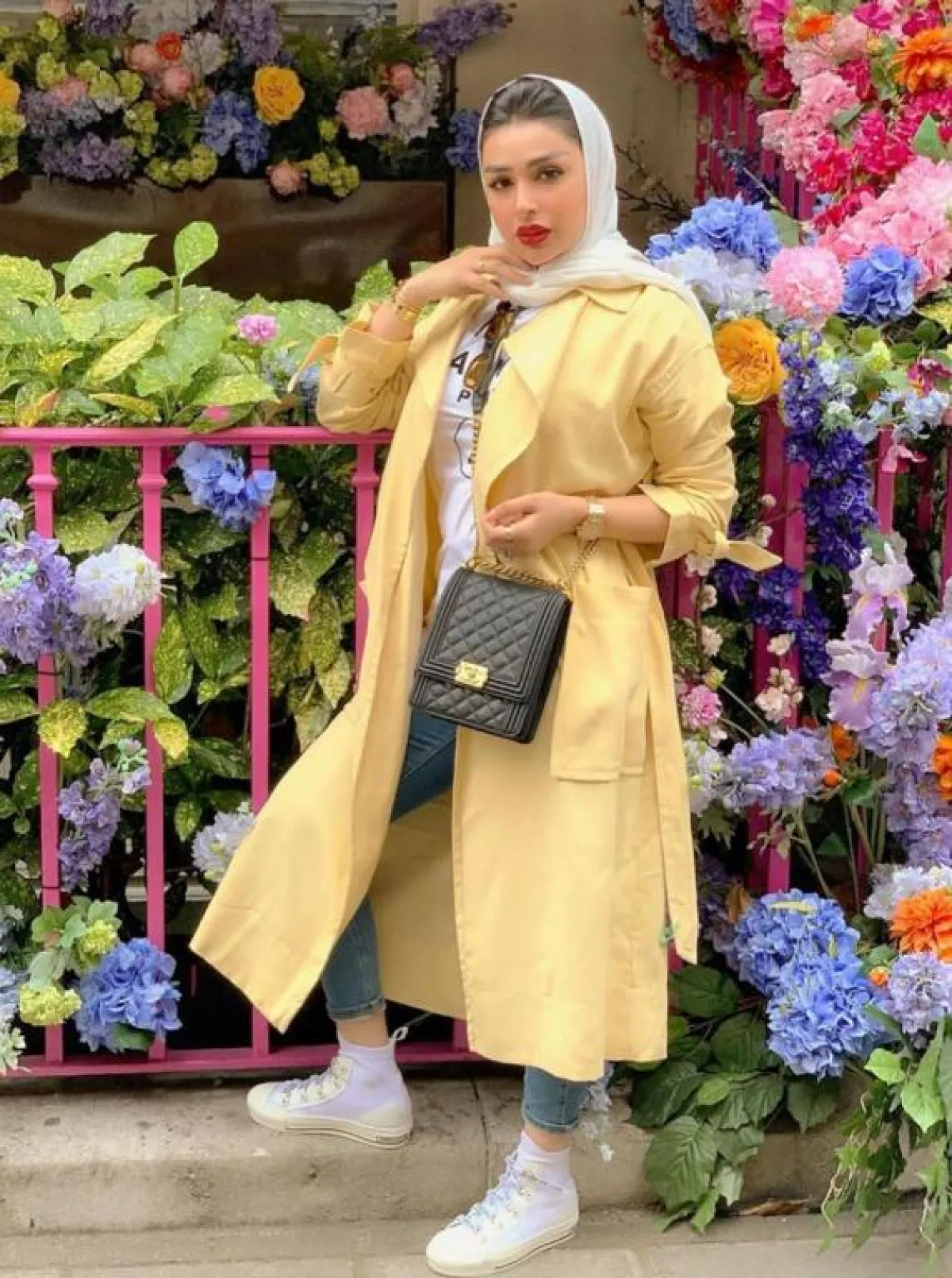 فيما ظهرت بإطلالات أكثر شبابيةً وأنوثة، منها معطف طويل أزرق وحذاء أبيض بكعب مميز، ومعطف طويل أسود وبلوزة بيضاء طويلة مربوطين بحزام أصفر مزين بكتابة سوداء، وأطلت بعباءة بنية مزينة بأزرار حمراء وشرائط، وتألقت بجمبسوت أسود بقماش مميز وحزام خصر، ونسقت معطفًا أبيض طويلاً مع بنطال وبلوزة باللون الزهري، واختارت معطفًا بنيًّا مع بنطال وبلوزة باللون الأبيض، وتجملت ببنطال جينز وبلوزة فوشيا وجاكيت سكري، وارتدت معطفًا طويلاً أصفر مع بنطال جينز وبلوزة بيضاء برسومات، وتزينت بجمبسوت أبيض عاكس للألوان مع بلوزة بنية وحذاء نيون.