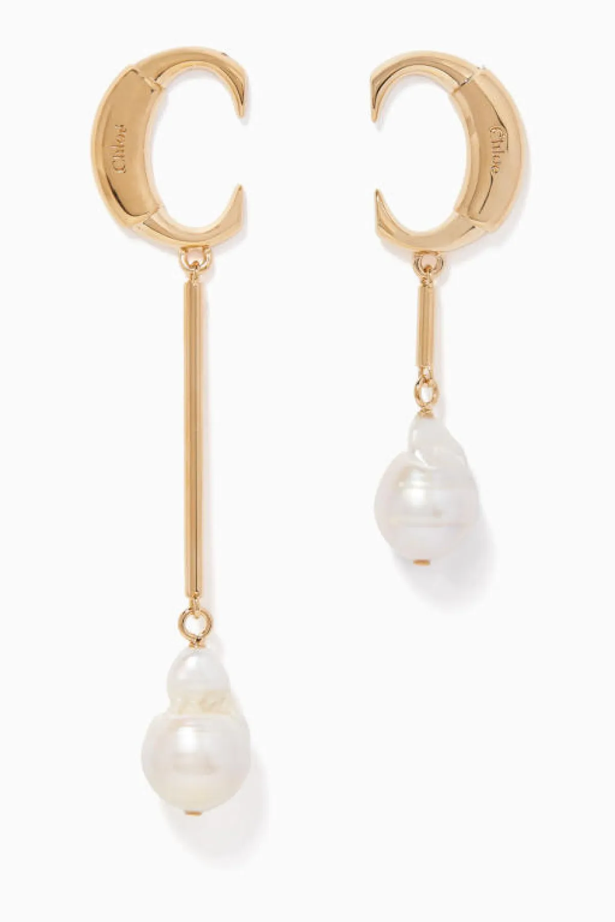 تمكنت هذه الأقراط الأنيقة من Chloé من لفت أنظارنا بشدة، خاصة وأنها احتوت على حبات اللؤلؤ الجذابة التي لم تأت بشكل دائري تقليدي، بل جاءت بشكل بيضوي وفوضوي، كما تميزت بتصميم الهلال الذي تزيّن بكلمة Chloé.