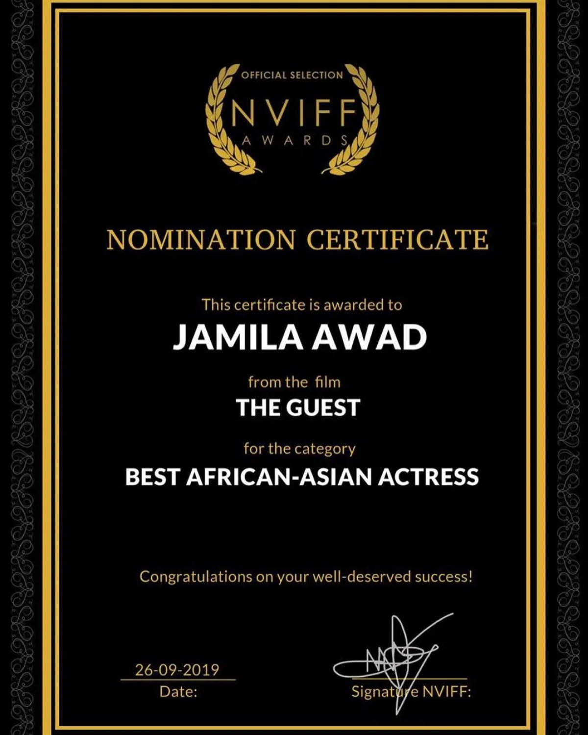 جميلة عوض من حفل ختام مهرجان نيو فيچن السينمائي الدولي بهولندا