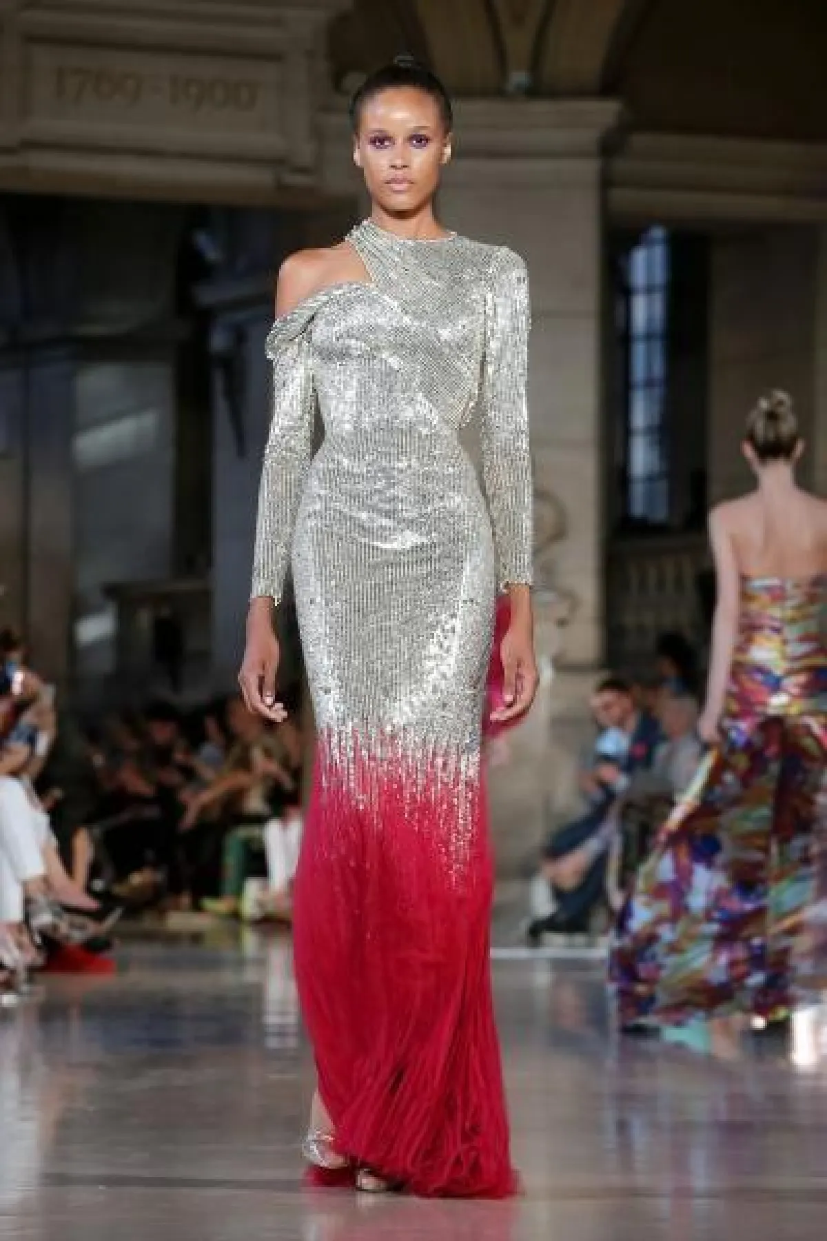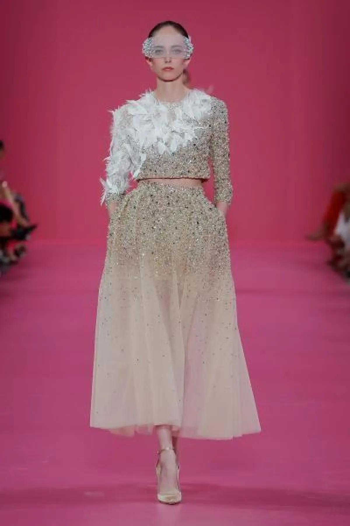 أيضاً قدم المصمم اللبناني جورج حبيقة Georges Hobeika فساتين لامعة في أحدث مجموعاته، مثل الفستان الـCrop Top المطرز بالذهبي.