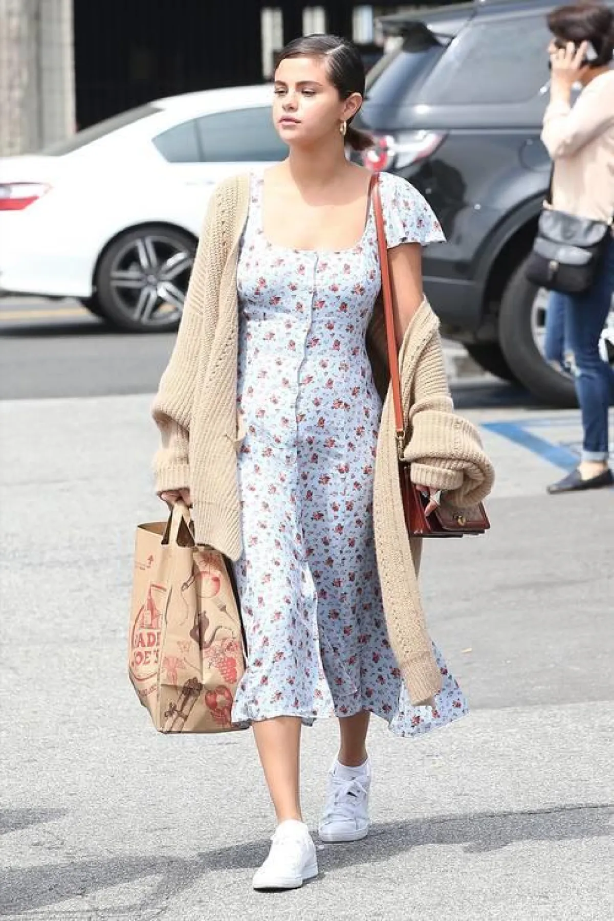 أما الممثلة الأمريكية، سيلينا غوميز، نسقت الحذاء الرياضي الكلاسيكي مع فستان مطبع بالورود، وأضافت كارديغان سميك مناسب للطقس. هذا الستايل يلهمكِ بإطلالات نهارية عصرية تناسب فتيات الجامعة.