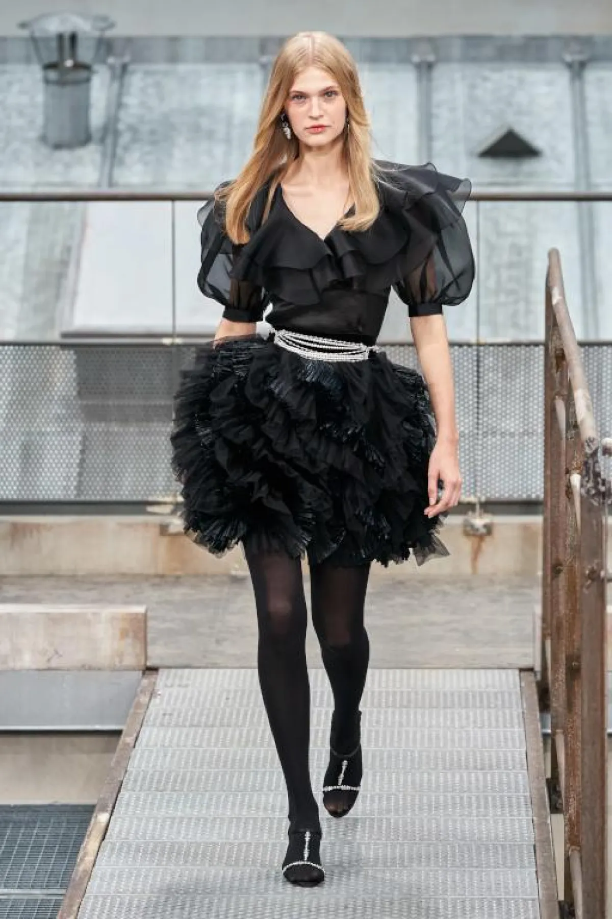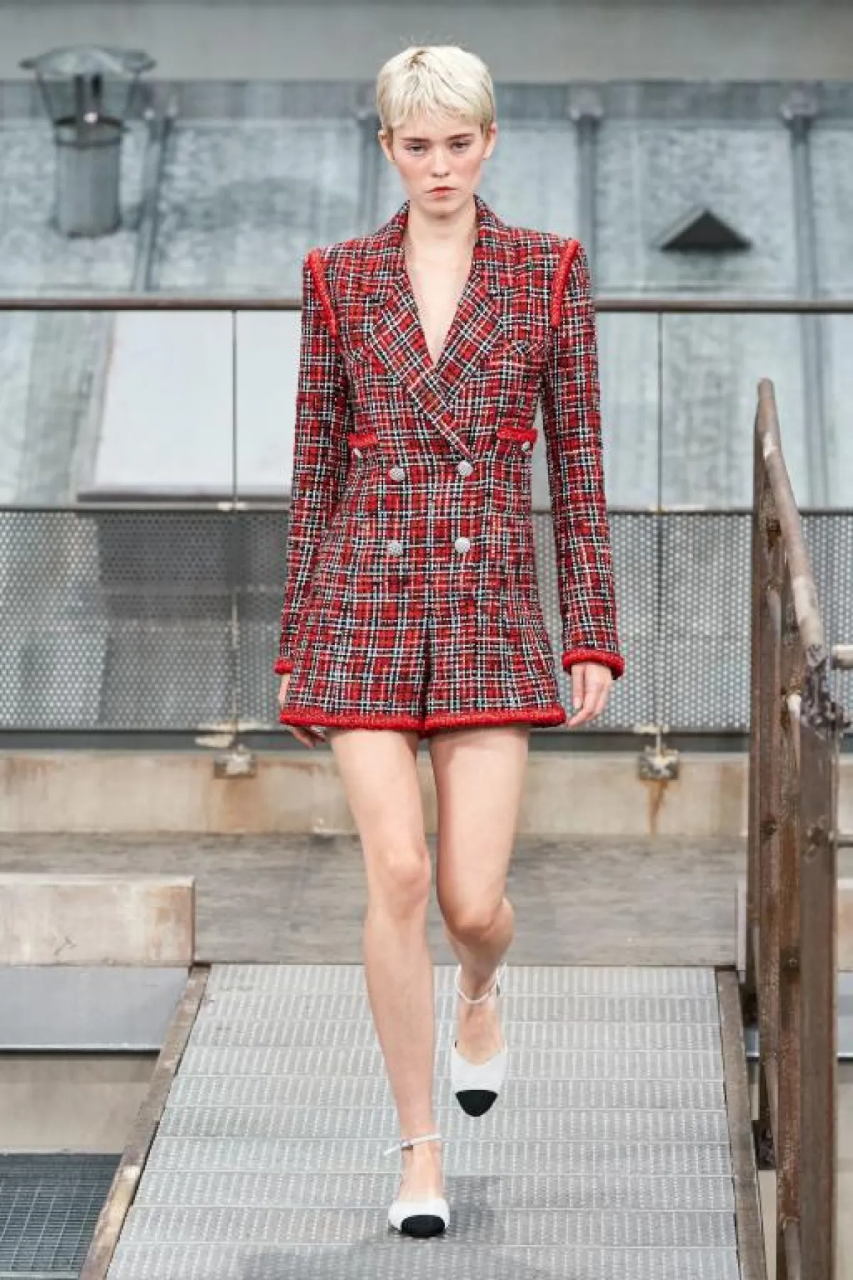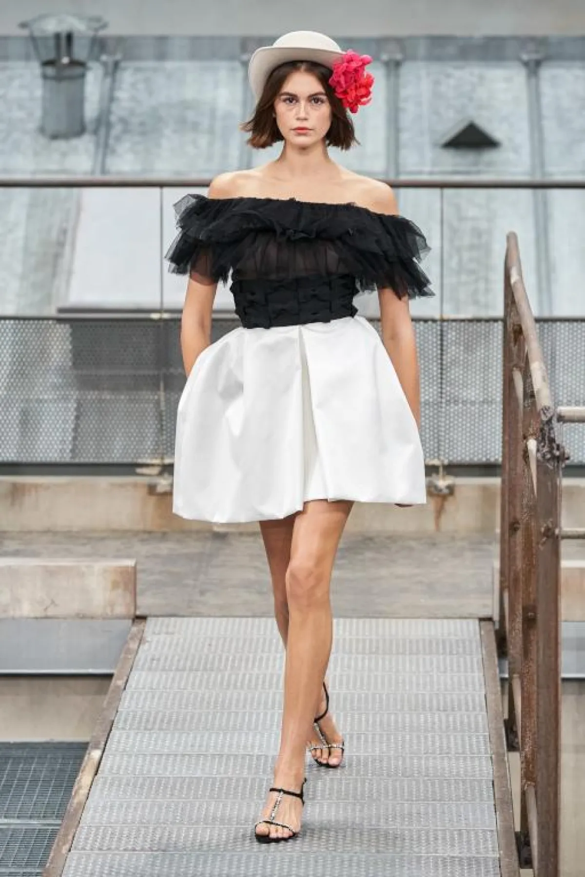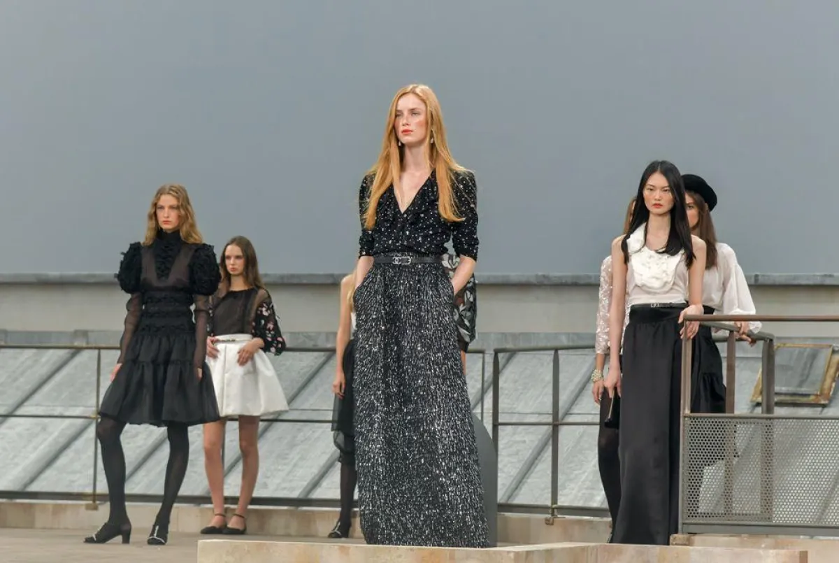 أرسلت فيرجيني فيارد Virginie Viard المديرة الإبداعية الجديدة لدار شانيل تحية إلى باريس، حيث تهادت العارضات في ديكور جسد أسقف بنايات العاصمة الفرنسية التي تتميز بلورنها الرمادي، بقيت المصمّمة وفية إلى حد كبير الى إرث الدار، حيث غلبت على معظم الأزياء أقمشة التويد طعمتها بتفاصيل من الموسلين والدانتيلا، جاءت القصات عصرية وشبابية، فقد رصدنا الكثير من الشورتات التي نسقت بسترات طويلة صنعت من قماش من التويد المخطط، وتشكيلة كبيرة من الجمبوستات القصيرة المصنوعة من التويد الملون بلمسة من الأحمر و الزهري، نسقت بأحذية مسطحة غلب عليها اللون الأبيض ، تألقت العارضة جيجي حديد بشورت أسود قصيروسترة طعمت طلتها بحزام من الحلقات الذهبية، أما العارضة كايا غربر فقد تهادت بتنورة مستديرة بيضاء اللون وتوب أسود طعم بكشاكش على مستوى الصدر، تخللت العرض مجموعة من فساتين الكوكتيل القصيرة صنعت من قماش اللاميه الفضي وأخرى من قماش التويد الملون بلمسة من الزهري والأحمر، نسقت إطلالات معظم العارضات بقبعات تارة وتارة أخرى بورود حمراء، أما فساتين السهرة فجاءت مطبعة برسومات عكست الهندسة المعمارية لبنايات باريس، وأخرى جسدت الأحرف اللاتينية التي تشكل إسم شانيل التي رسمت بالبنط العريض وباللونين الزهري والأزرق، نسقت كلها بصنادل صيفية عالية طعمت بأحجار من الستراس.