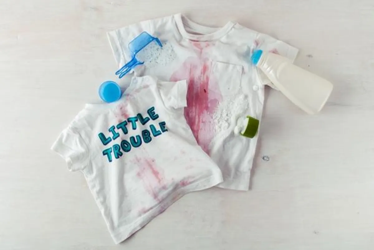 في الآتي، خطوات للتخلّص من البقع، التي قد يتركها الطفل على ملابسه: