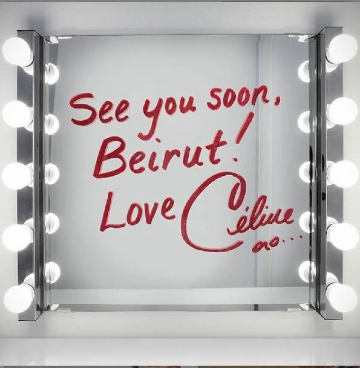 سيلين ديون أعلنت عن حفلاتها ضمن جولاتها العالمية "Courage" عبر الكتابة بأحمر الشفاه على المرآة، معلنة عن وجهة حفلها المقبل.