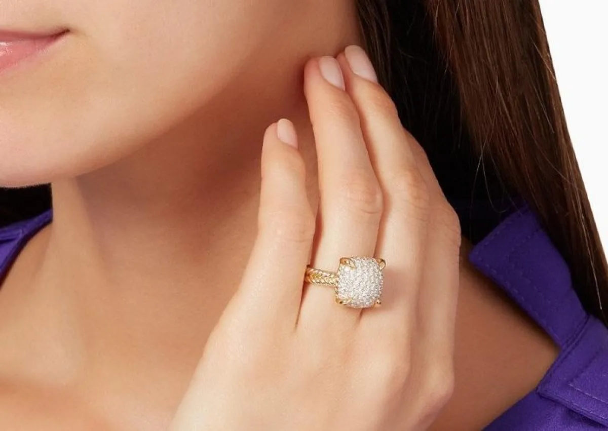 بالتأكيد هو قادر على منح الإطلالة فخامة لا مثيل لها، فدمج الذهب مع أحجار الماس الصغيرة قادرة على خلق فخامة لا تضاهى، وهذا الأمر الذي رأيناه في خاتم David Yurman الذي جاء بتصميم بسيط وكلاسيكي يناسب مختلف الأذواق.