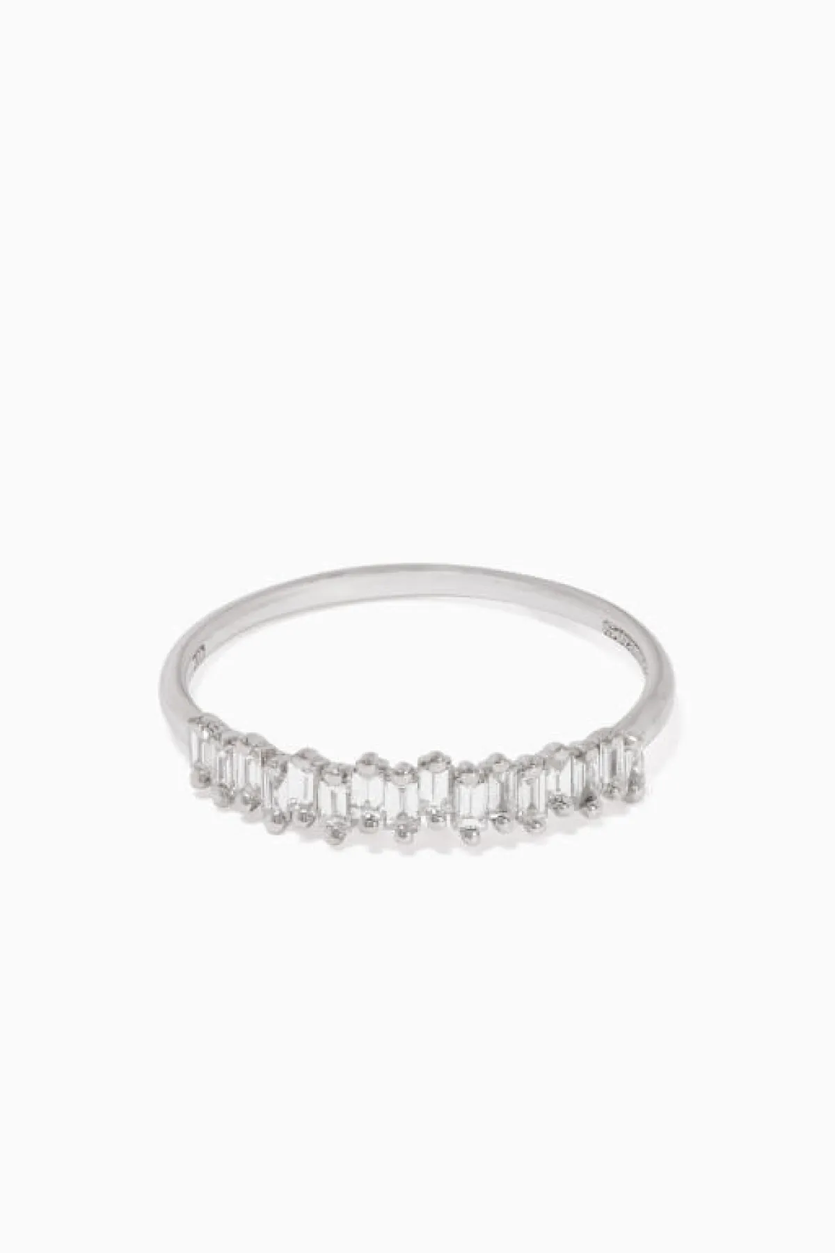 فقد جاء بتصميم بسيط باللون الفضي والذهب الأبيض، وتميّز بشكله البيضوي من الأمام الذي رُصع بأحجار الماس المتقاربة والمرصوفة بجانب بعضها، ما منحته رونقاً لافتاً.