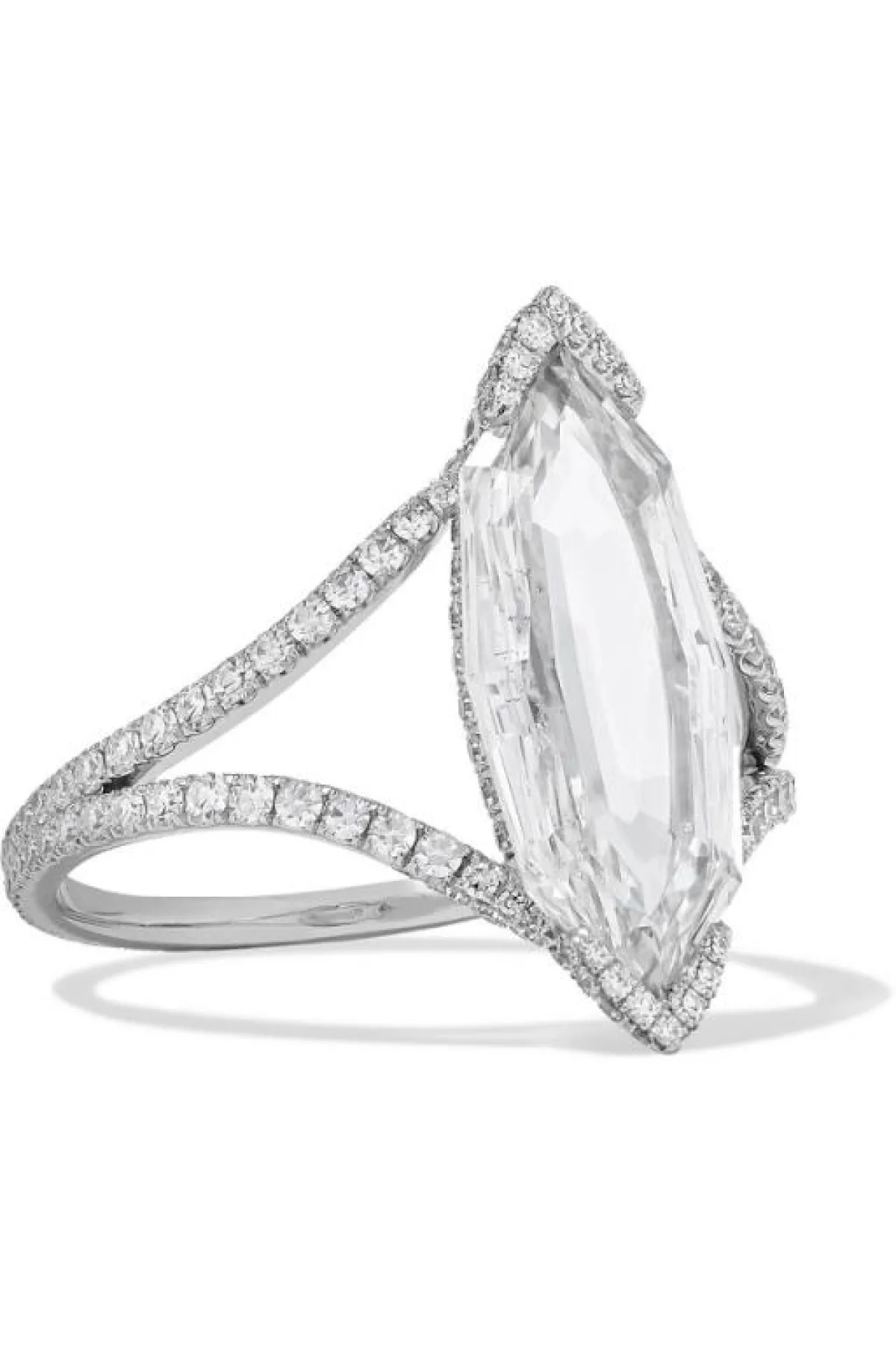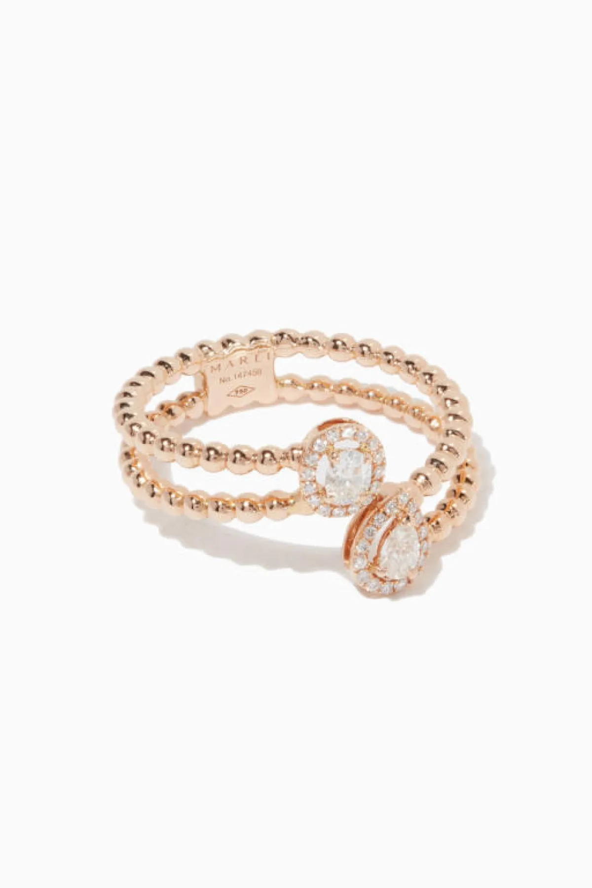 استطاع هذا الخاتم الجذاب من Gucci من لفت أنظارنا بشدة، فاخترناه لك كونه جاء بتصميم كبير الحجم وعلى شكل وردة مفرغة الأوراق، كما رُصع بأحجار الماس الصغيرة والمتنوعة الأشكال والتصاميم بالكامل.