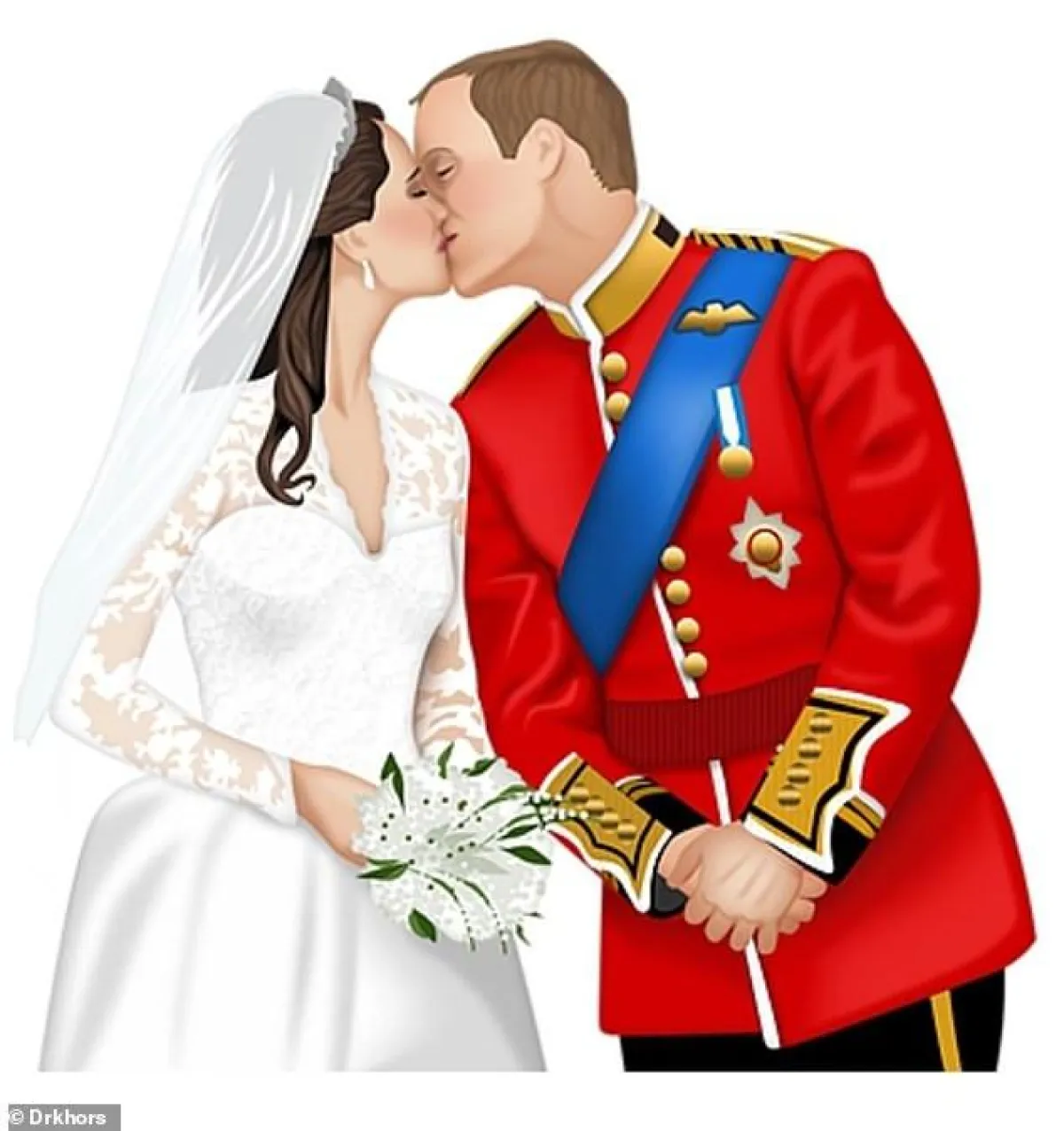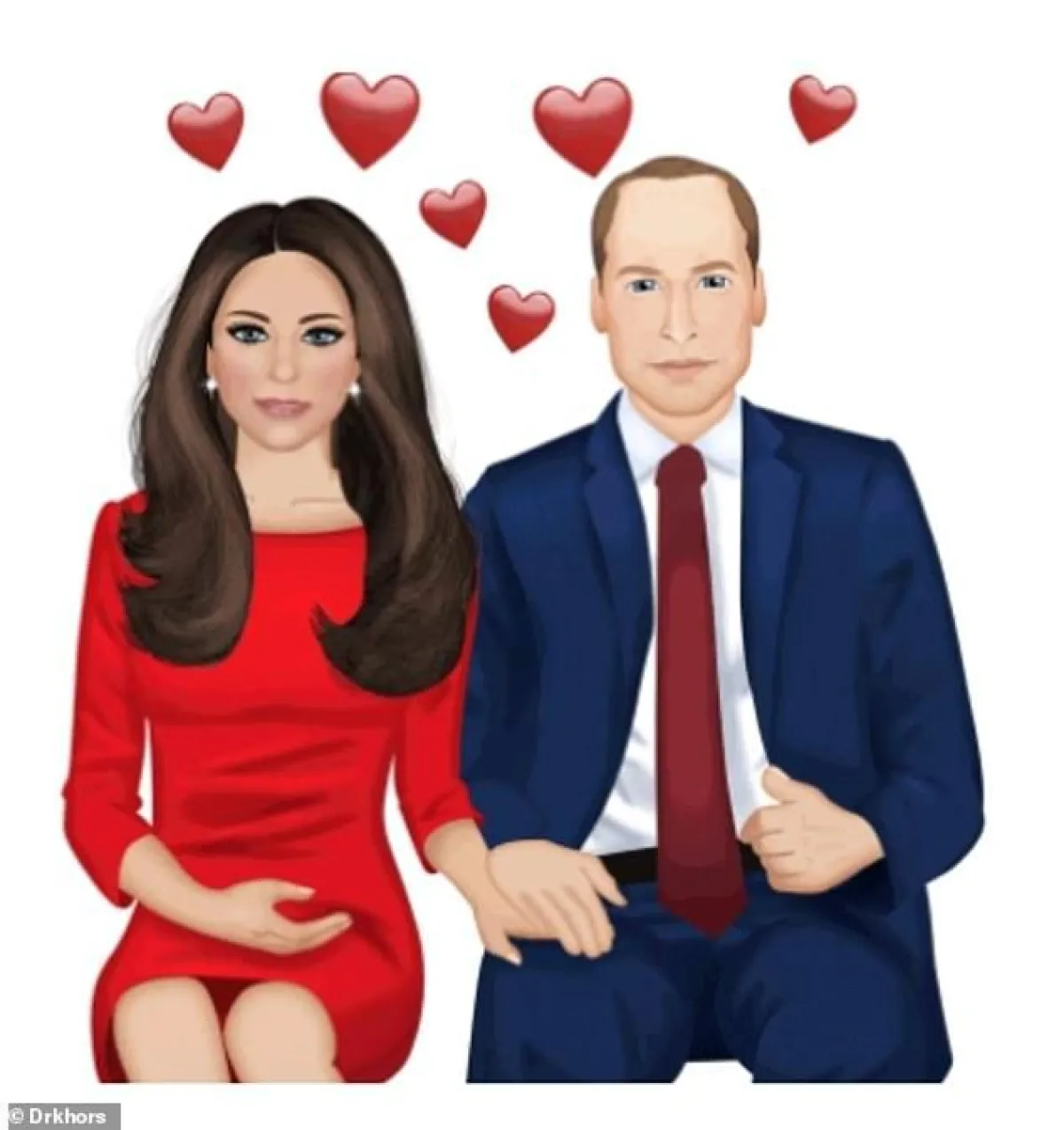 وتوجد ملصقات ورسوم متحركة تصور لبعض لحظات كيت وويليام الأشهر، مثل قبلة يوم زفافهما عام 2011، ووضع الدوقة يدها بمودة على ركبة زوجها.